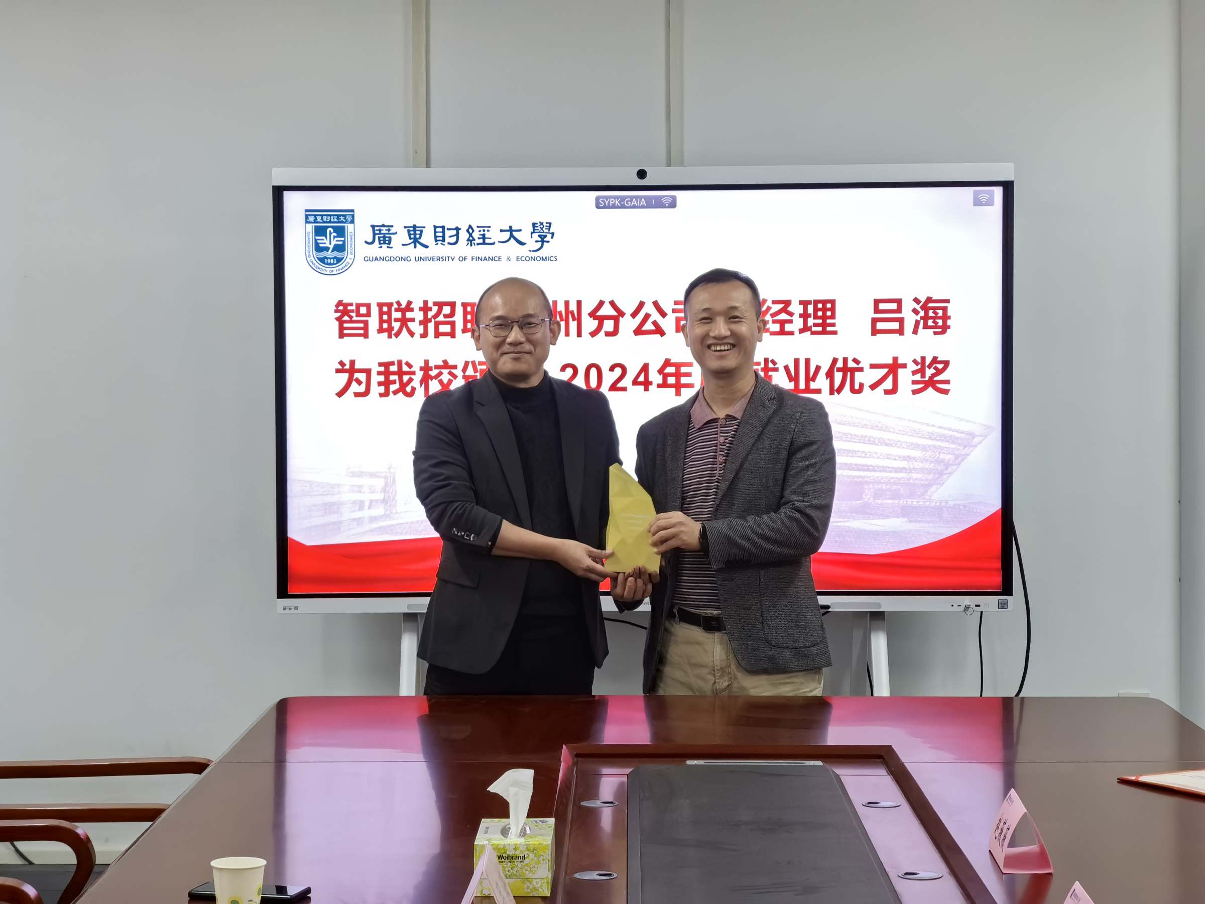 会上,吕海还代表智联招聘为我校颁授了“2024年度就业优才奖”奖牌,赵薇薇代表学生就业指导中心向陈桂玲颁发了学生校外就业指导老师聘书。