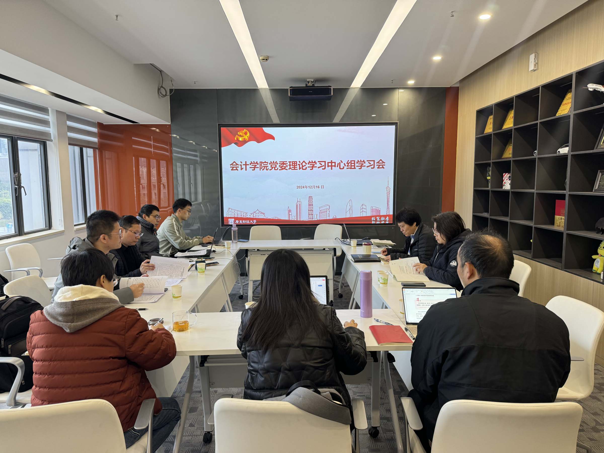 12月16日,会计学院党委理论学习中心组在广州校区立德楼521会议室召开专题学习会,深入学习习近平同志《论教育》。学校党建工作督导组第一小组督导员陈丽清同志到会列席,学院领导班子成员、党委委员、组织员参会。会议由学院党委书记彭翠峰主持。