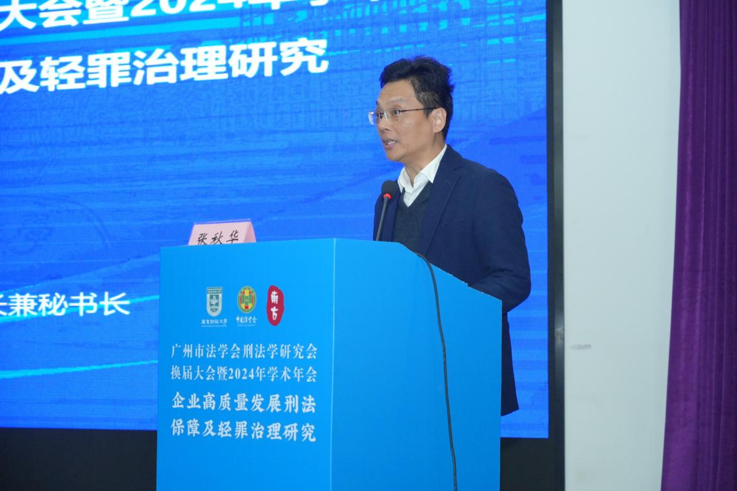 12月21日,广州市法学会刑法学研究会换届会议暨2024年学术年会在我校举行。本次会议由广州市法学会主办,广州市法学会刑法学研究会、广东财经大学法学院、广东南方福瑞德律师事务所、广东财经大学企业合规研究院共同承办,共有来自法学理论界及实务界的120余位专家、学者参会。我校副校长鲁晓明、广州市法学会专职副会长兼秘书长张秋华出席大会并致辞。会议由我校发展规划处处长谢雄伟主持。