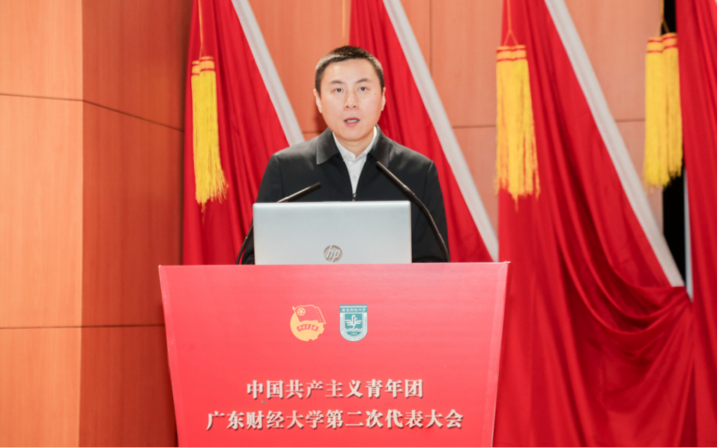 朱戈同志代表共青团广东财经大学第一届委员会作题为《牢记嘱托跟党走 团结奋斗启新程 为建设大湾区一流财经大学贡献青春力量》的工作报告,全面回顾了第一次团代会以来学校共青团取得的工作成效,明确了学校共青团今后五年工作的工作思路和工作目标。