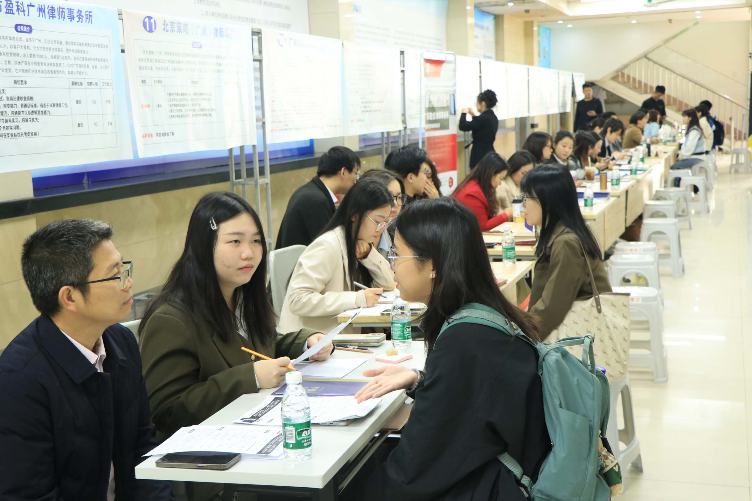 本次招聘会共邀请了40家企业参会,提供了200多个法学相关岗位,其中包括北京市盈科律师事务所、广东天地正律师事务所、北京大成(佛山)律师事务所等知名单位。同时,招聘会现场邀请了海珠区人社局、华图教育工作人员进行简历诊断及就业指导咨询,服务毕业生覆盖200人次。