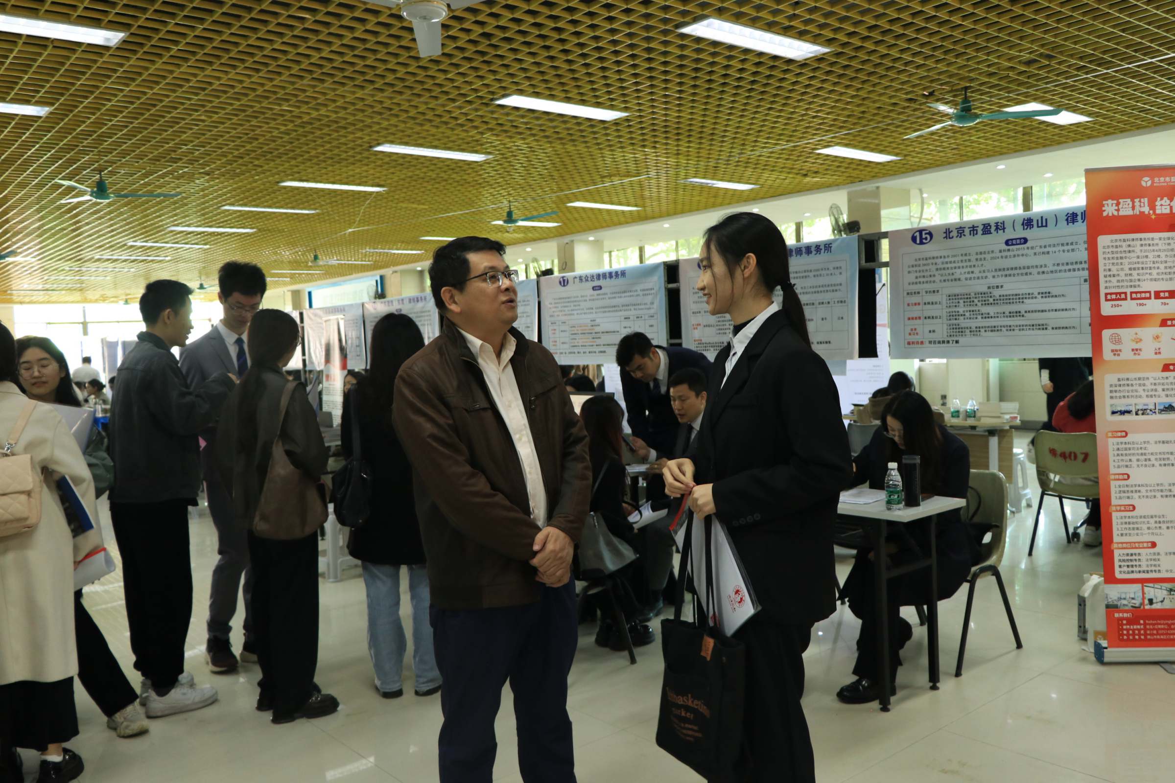 12月27日,法学院在广州校区大学生就业服务中心举办主题为“追梦当下,逐梦未来”的2025届毕业生就业暨实习专场招聘会。副校长鲁晓明,学工部副部长梁铿浩,学院党委书记陈静、副书记方继勇前往招聘会现场,400余名法学院本科生和研究生400参加招聘会。
