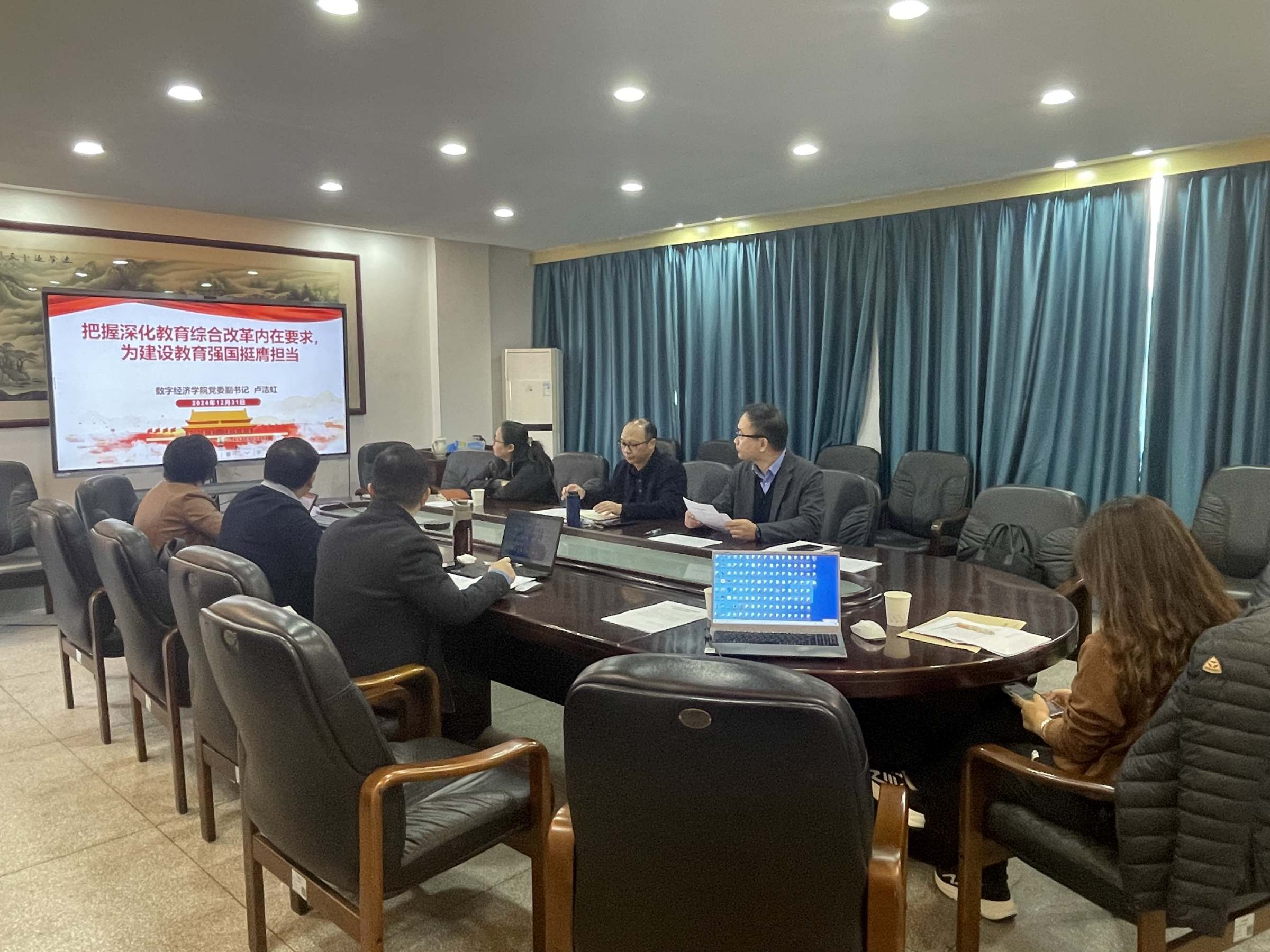 2024年12月31日,数字经济学院党委理论学习中心组召开专题学习会。学院党政领导班子成员、教工党支部书记、学生党支部书记、党委组织员参加学习会。会议由学院党委书记李恩华主持。