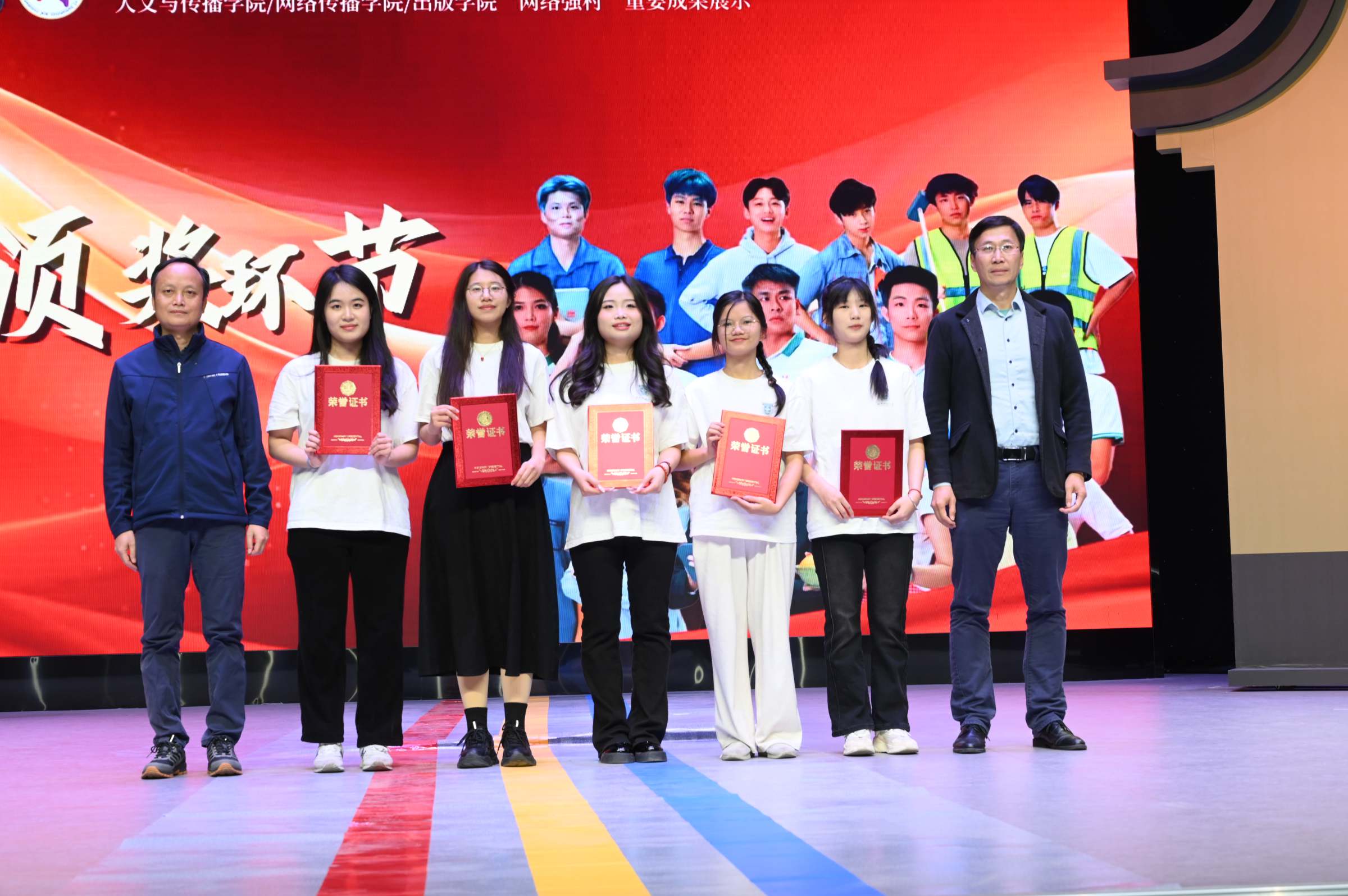 最后,本次演出还由观众评出了最佳男女演员奖、最佳男女配角奖、最佳台词奖、杰出奉献奖等诸多奖项。到场领导嘉宾为获奖同学颁奖。