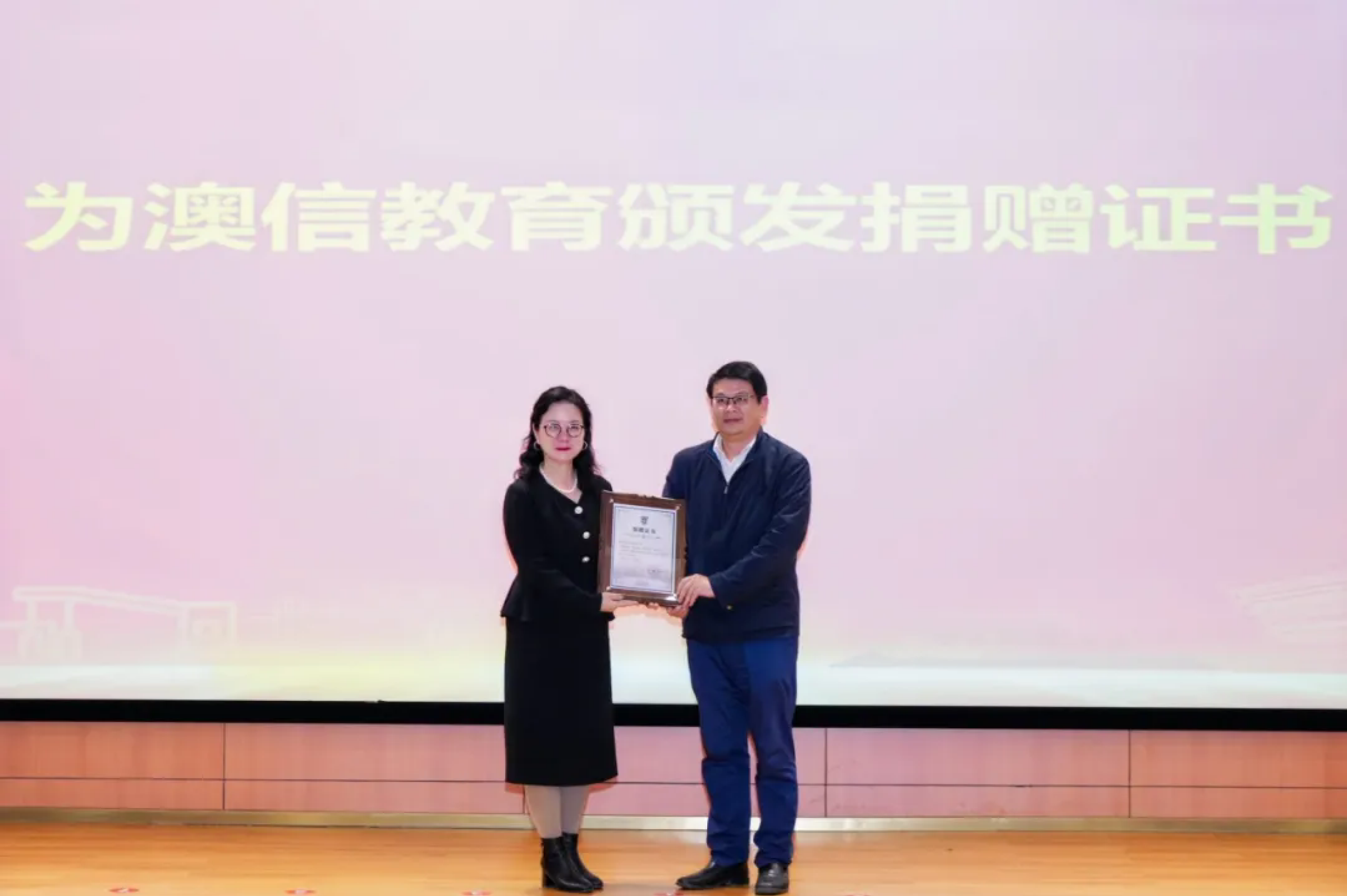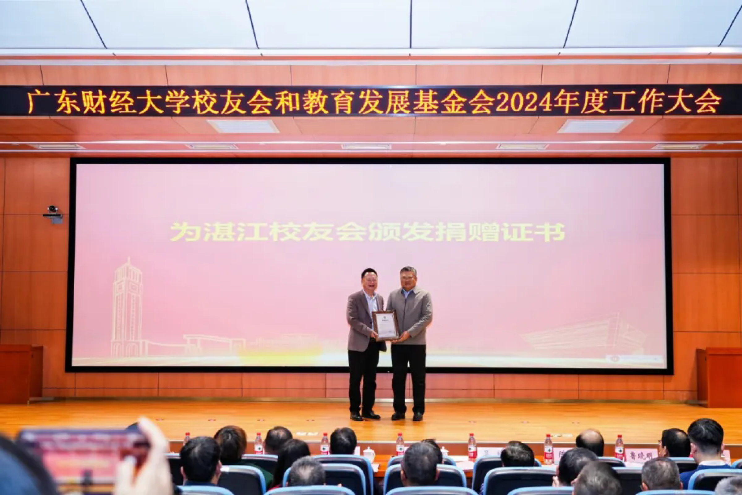 会上,举行了证书颁发和授牌等仪式。郑贤操为方昀颁发基金会荣誉副理事长聘书,为国家安全学学科建设基金捐赠代表黎展鹏、朱凤涛颁发捐赠证书。于海峰为金融学院左柏云教授颁授“慈善使者”铭牌,为冯燕梅颁发感谢状。吴琦为校友工作校级学生组织“广东财经大学校友服务中心”授牌,为湛江校友会颁发捐赠证书。邹新月为2024年度校友导师颁奖。鲁晓明为莫嫣红颁发捐赠证书。