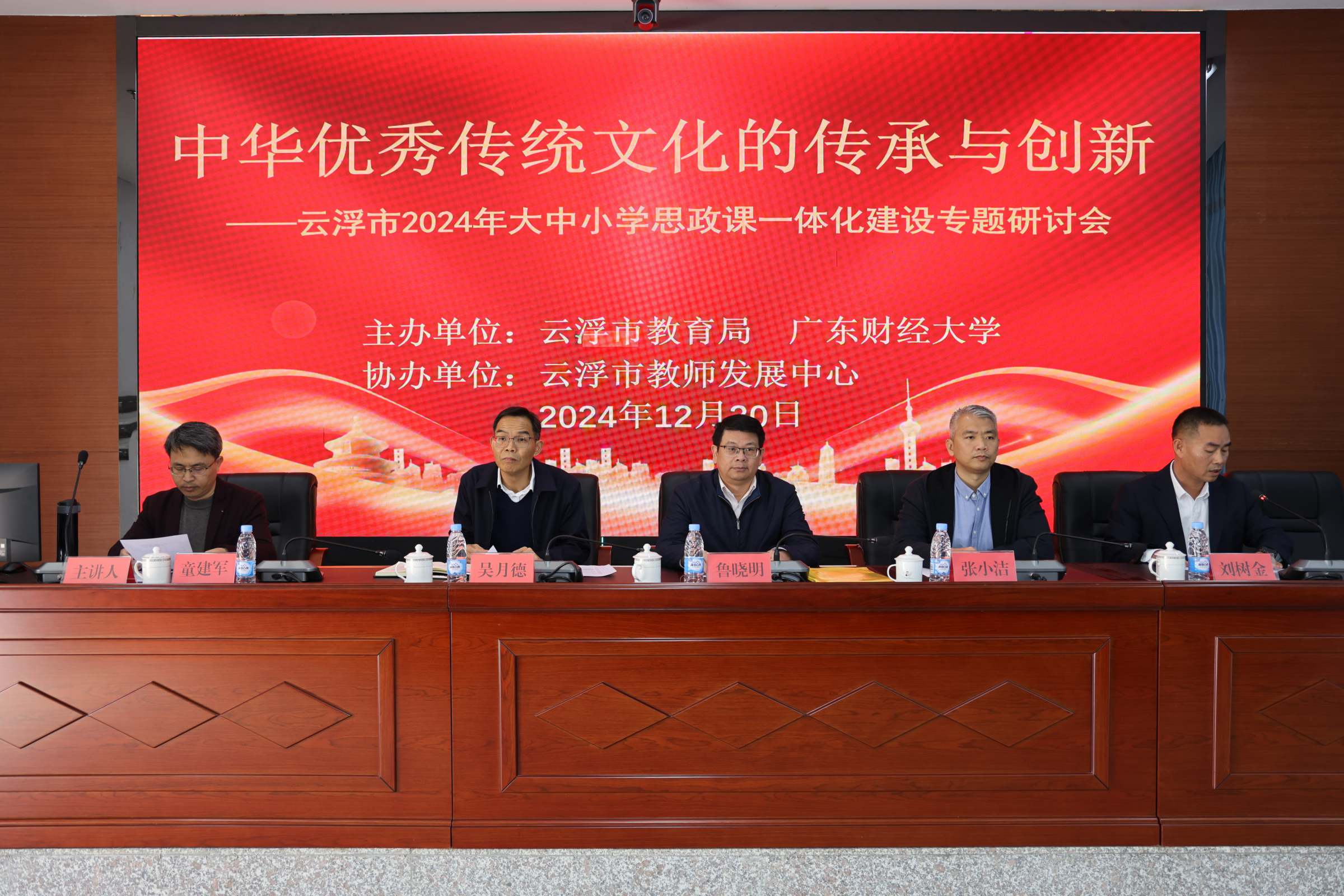 2024年12月30日,云浮市教育局与广东财经大学在云浮市教师发展中心联合举办“中华优秀传统文化的传承与创新——云浮市2024年大中小学思政课一体化建设”专题研讨会。广东财经大学副校长鲁晓明和云浮市委教育工委书记、市教育局党组书记、局长吴月德出席会议并分别致辞。