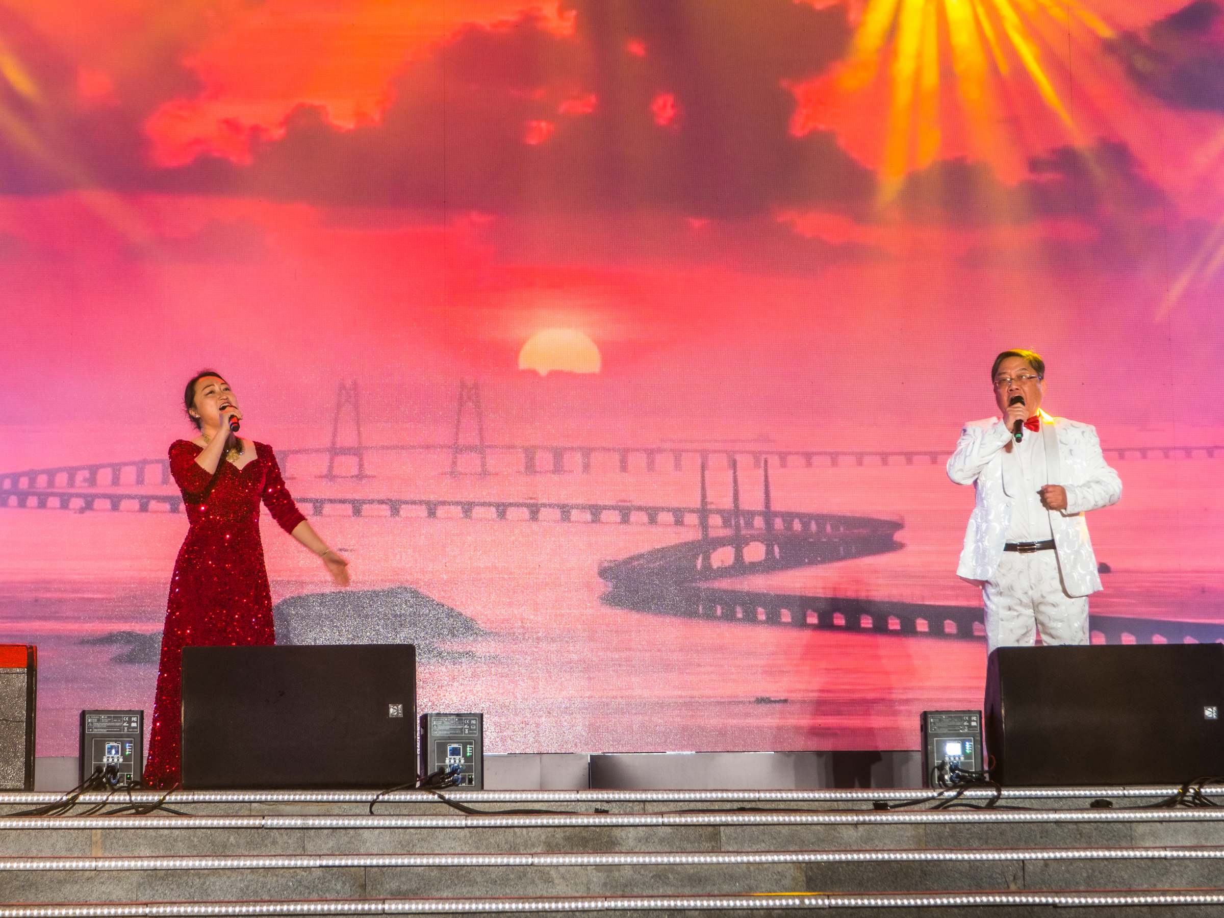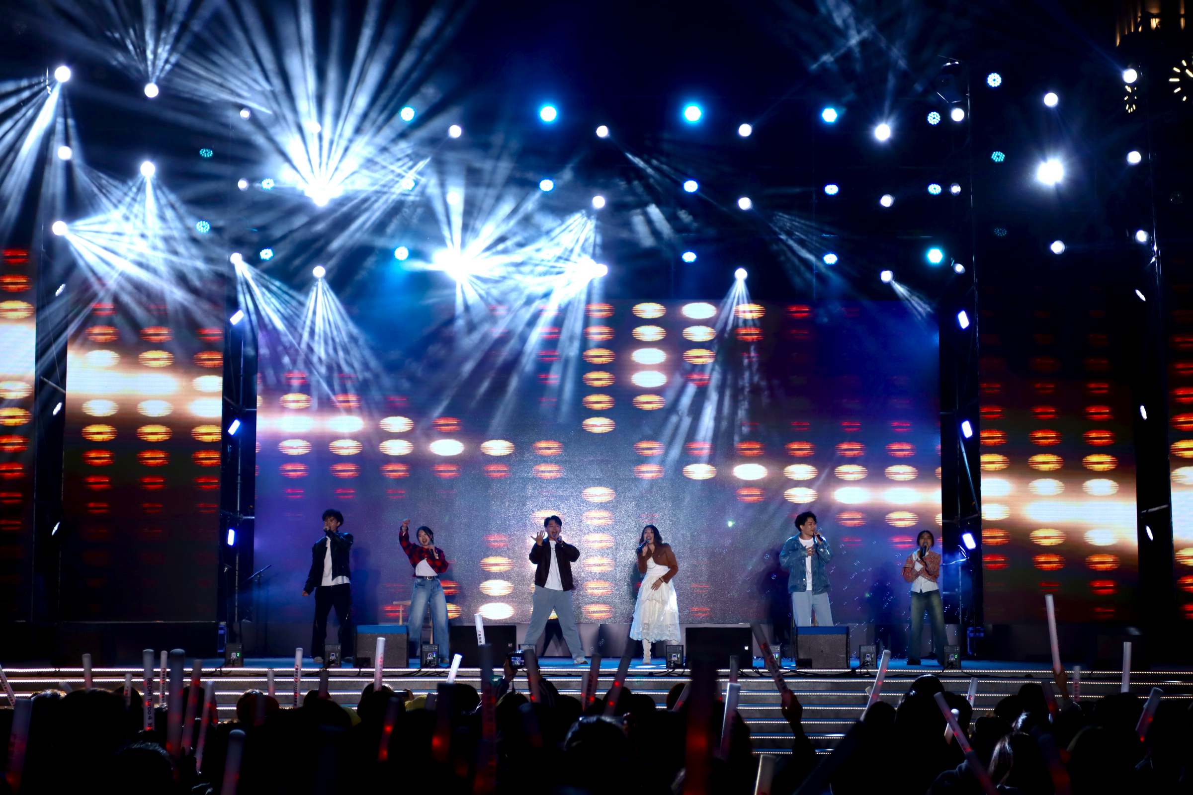 歌会第一篇章《青春滚烫,时光启航》。动感十足的《卡拉永远OK》让现场氛围持续热烈,抒情温暖的《我们的明天》唱出了对未来的期许。值得一提的是,学校“双百行动”结对共建地惠州市惠阳区的恩雅音乐乐队来到歌会倾情献唱,《17岁》《夜半小夜》《海阔天空》三首歌曲串烧带领听众领略粤语经典,重温青春岁月。