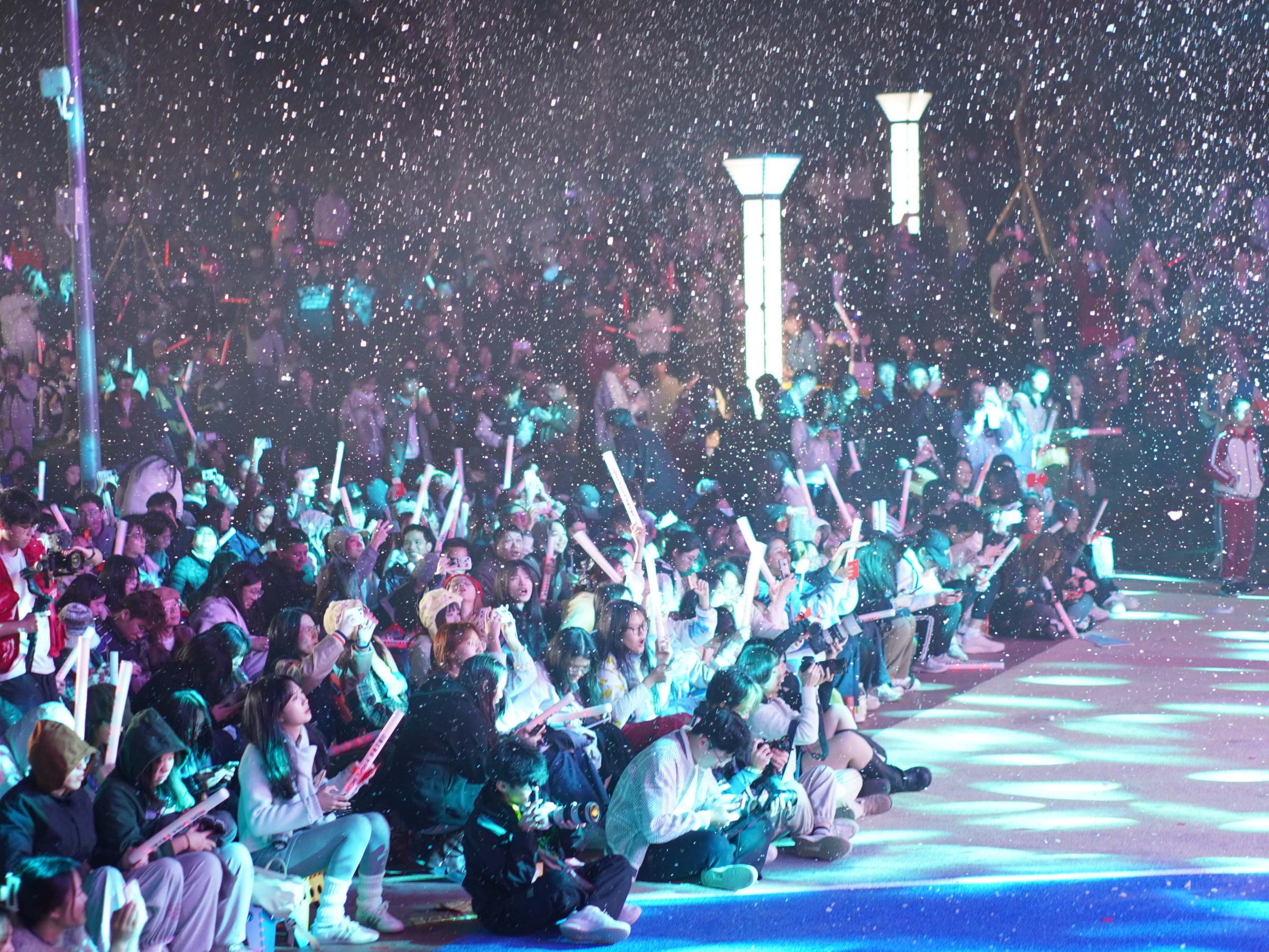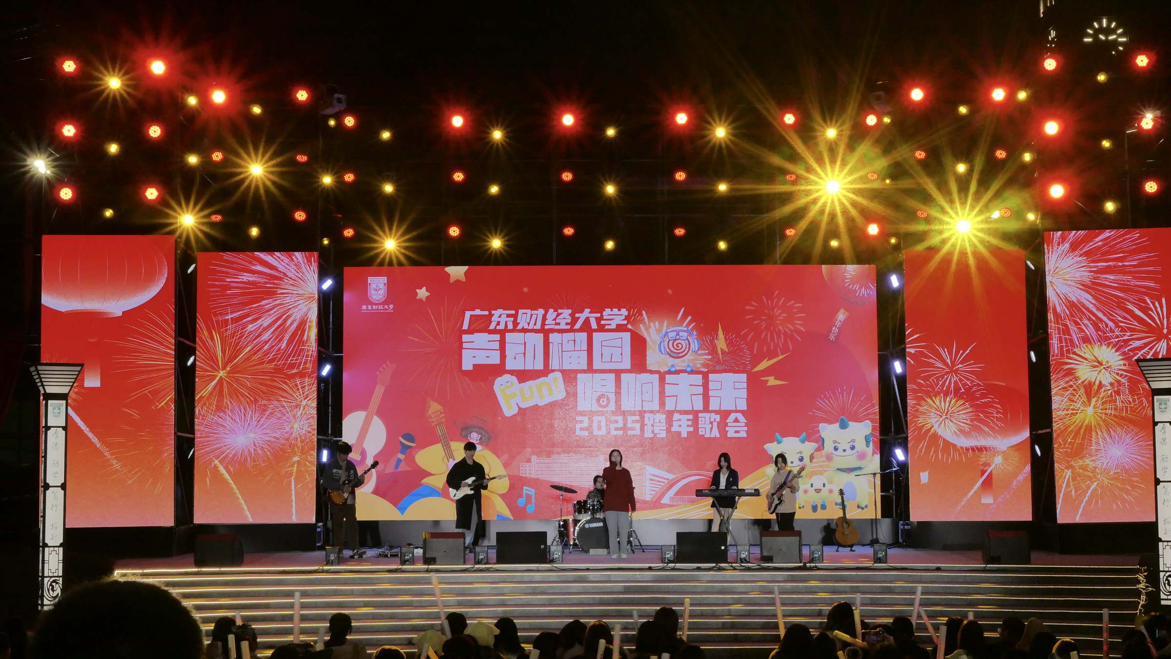 特别值得一提的是,跨年歌会特别邀请了优秀校友、留学生、海珠区政府等友好单位,以及“双百行动”结对共建的惠州市惠阳区乐队共同参与表演。此次跨年晚会也成为突出学校中心工作、彰显广财办学特色、激发学生爱校荣校情感的重要平台。晚会收获了师生校友的广泛好评,并登上广东共青团视频号,学校“超贴心”“太赞了”等好评在学生群体及自媒体上广泛传播。