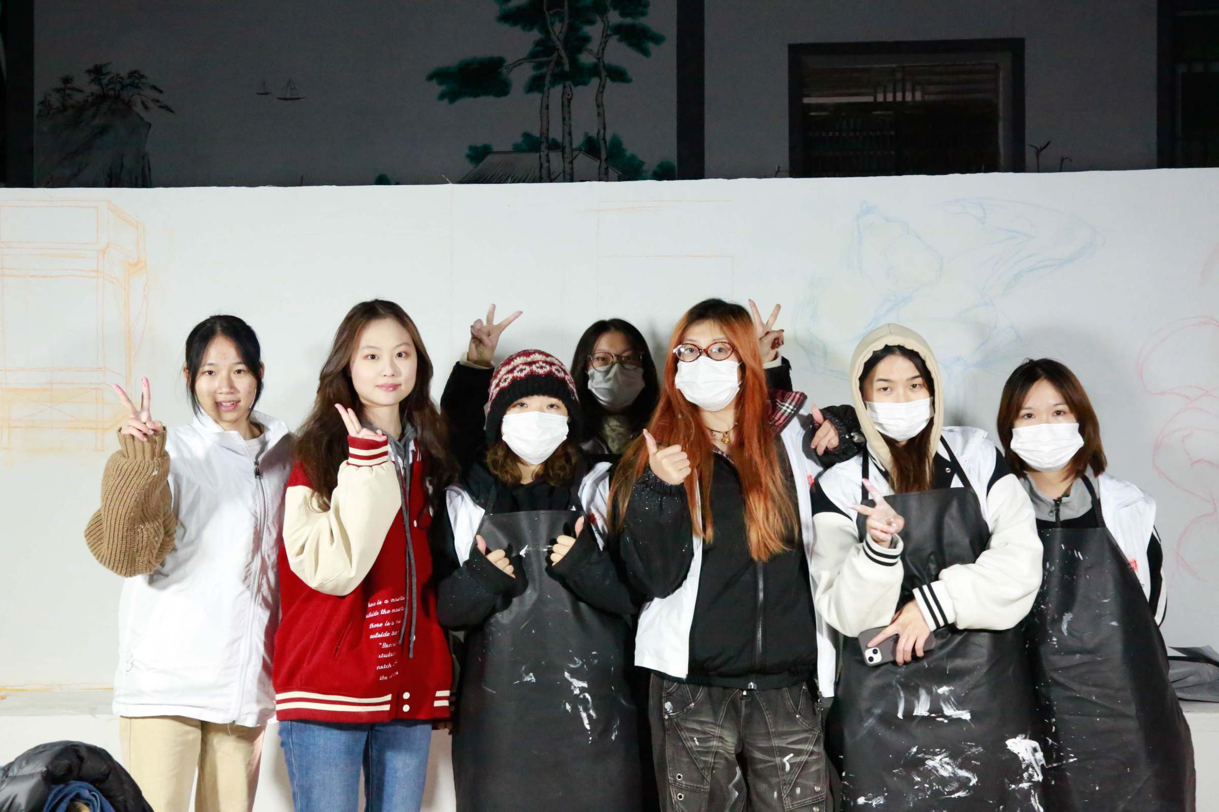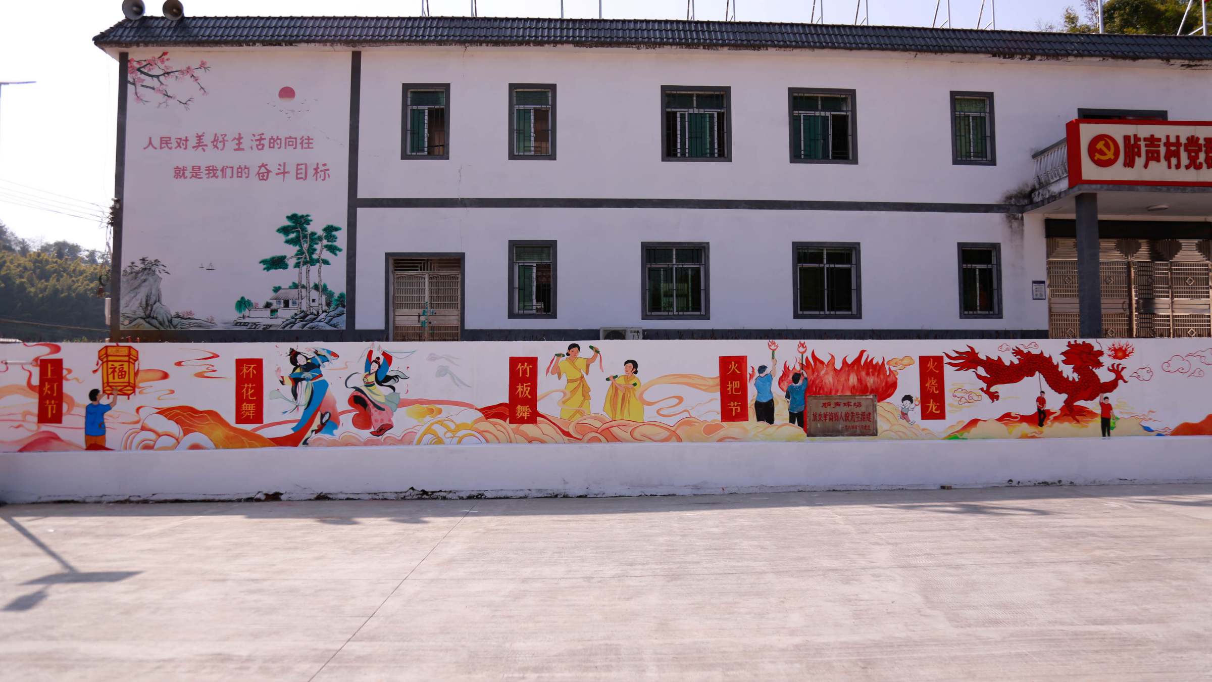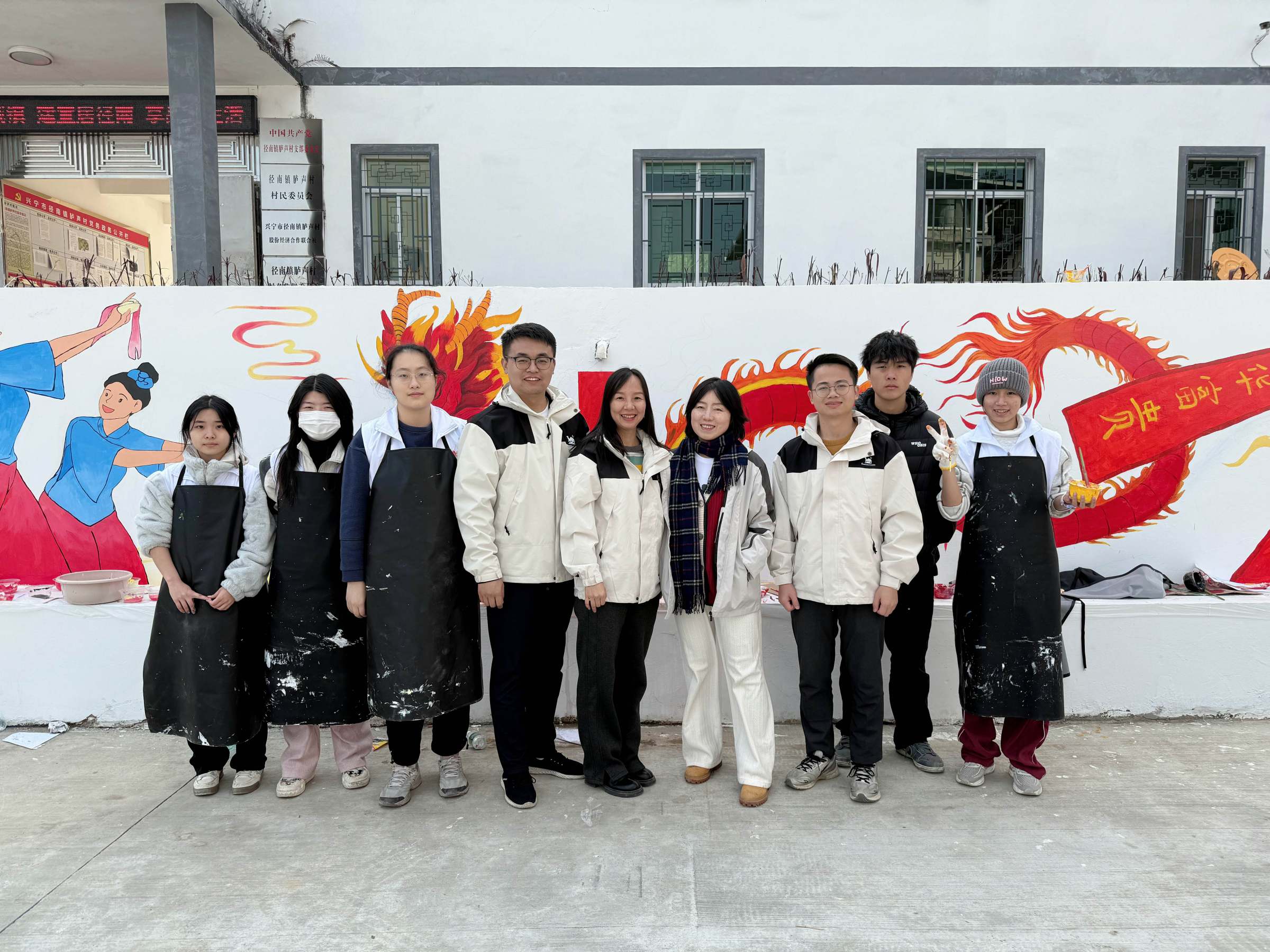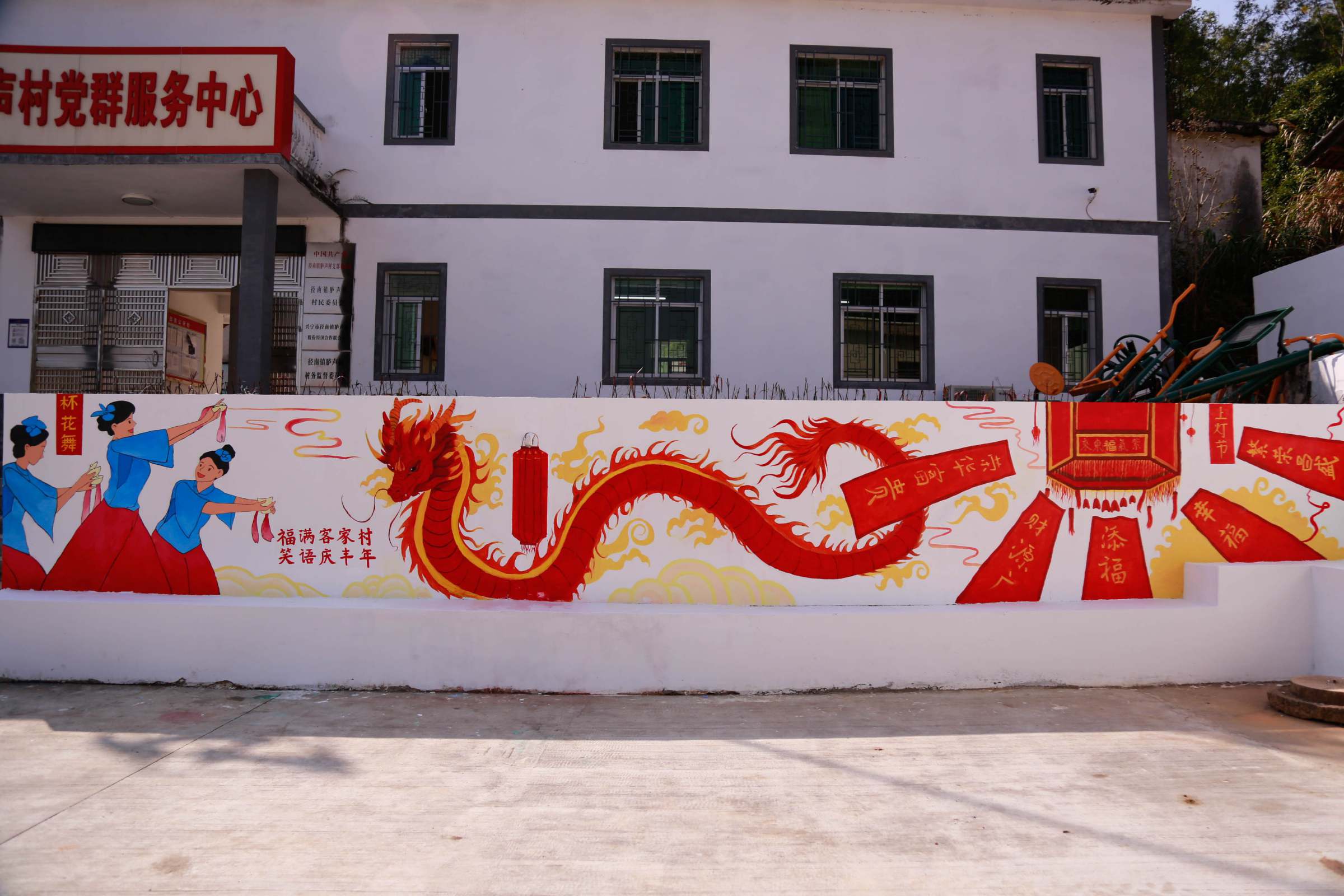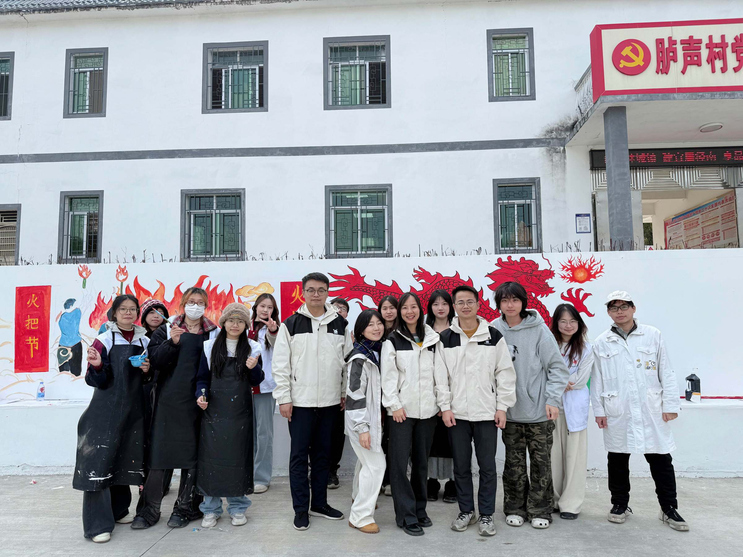 艺术与设计学院党委高度重视此次“百千万工程”活动,在接到任务后,学院迅速组建了一支由学院党委副书记陈小璇带队,辅导员、专业老师指导,本硕学生参加的实践队伍,队伍人数达24人。从设计初稿,到与当地政府沟通审稿修改,再到采购物资、出发兴宁、开始墙绘、挑灯夜战、完成墙绘,前后历时不到10天,高质量高效率完成了胪声村50多平方米的墙绘。广财艺术与设计学院的同学们,用自己的实际行动,挺膺担当、积极作为,在助力乡村振兴的伟大实践中绽放青春光彩。
