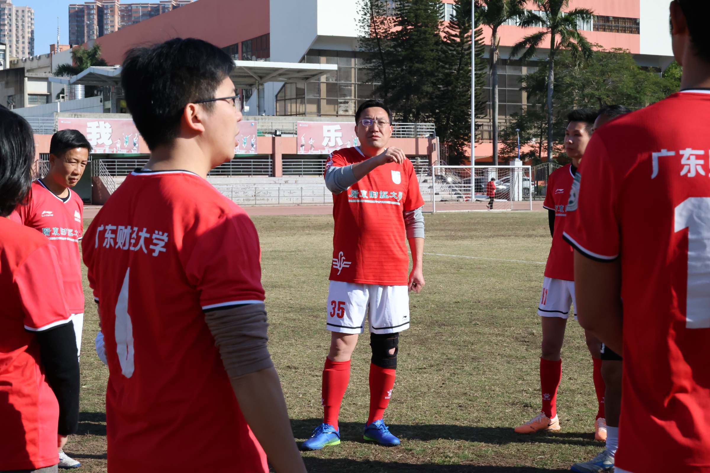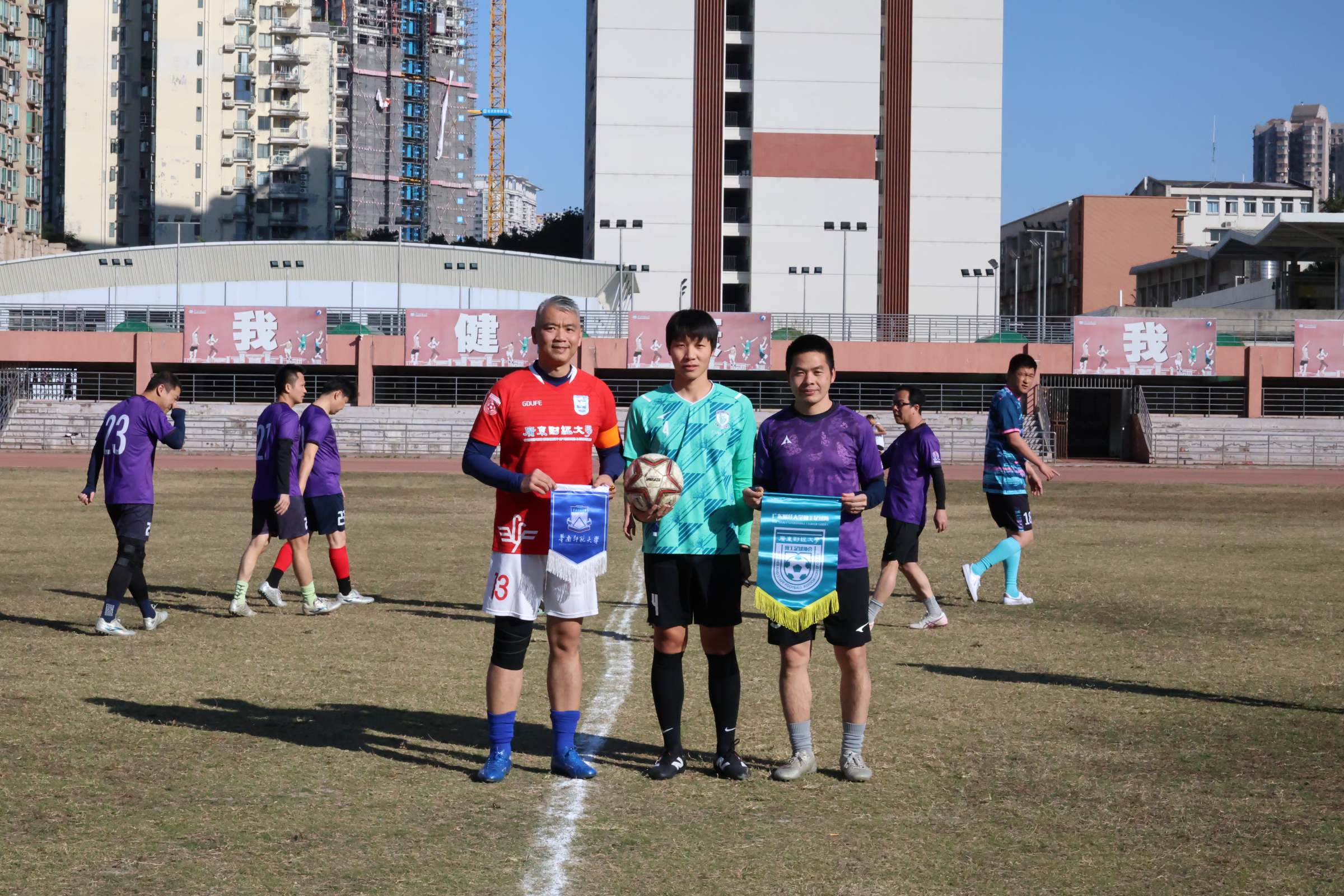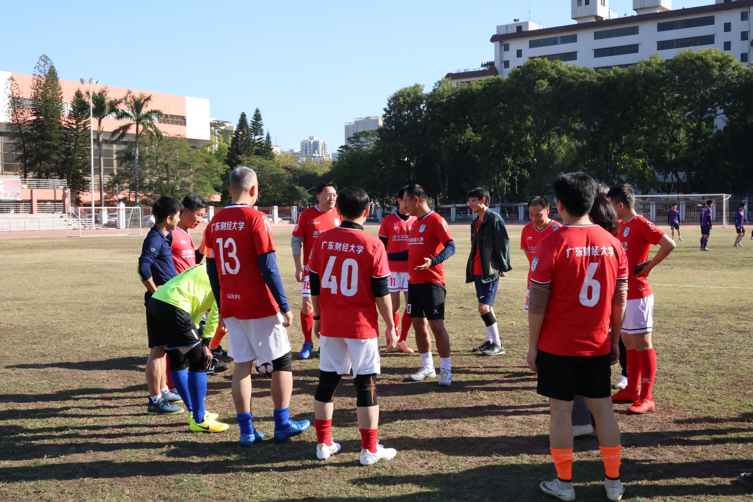 1月12日,在阳光明媚的冬日里,广东财经大学与华南师范大学教职工足球队在华南师范大学石牌校区西区足球场共同上演了一场精彩的足球友谊赛。此次比赛为两校的教职工们提供了一个展示球技的平台,促进了体育精神交流,深化了校际友谊。华南师范大学副校长刘剑文、校工会常务副主席谭俊生,广东财经大学工会常务副主席陈红丽,两校教职工足球队员参加了此次活动。