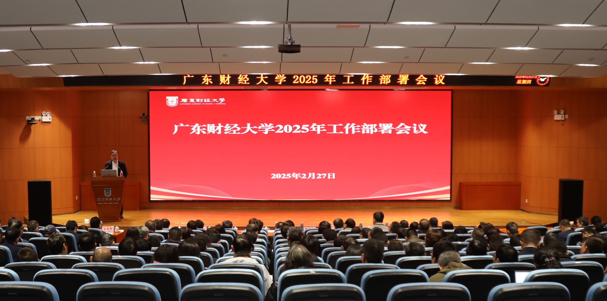 校党委书记郑贤操以《奋楫争先担使命 接续奋进建一流》为题,就做好2025年工作提出三点意见。一是要把握机遇、保持清醒,切实增强加快建设大湾区一流财经大学的责任感、使命感、紧迫感。党的二十大提出,到2035年建成教育强国;党的二十届三中全会提出,要统筹推进教育科技人才体制机制一体改革。广东坚持教育优先发展,加快构建高质量教育体系。粤港澳大湾区加快建设国际科技创新中心、高水平人才高地和国际教育示范区。学校身处大湾区,要牢牢把握以上战略机遇,坚决扛起使命责任,与时俱进、正视挑战,积极对接广东建设现代化产业体系建设需求,培养高质量人才,服务广东经济社会发展。二是要锚定目标、坚定信心,矢志不渝建设大湾区一流财经大学。坚持根植湾区,围绕大湾区高质量发展的人才需求、战略谋划和建设推进积极作为。立足湾区、服务湾区、融入湾区,把湾区的概念深入到每个广财人的血液中,贯彻到改革发展的方方面面;坚持服务大局,落实专业对接广东、智库引领广东、科研服务广东、人才支撑广东,深化校地合作、产教融合,服务广东经济社会高质量发展;坚持数智赋能,主动适应并借力现代信息技术手段,准确客观把握数智技术与学校学科专业的内在联系,培养适应新时代要求的复合型人才;坚持特色发展,在“独特、优特、新特”上下功夫,打造具有财经类高校特色的学科体系、教学体系、教材体系、管理体系。三是要强化“五个统筹”,为早日建成大湾区一流财经大学接续奋斗。统筹好守正与创新,夯实强校建设的政治引领。坚持不懈用习近平新时代中国特色社会主义思想铸魂育人,加强思政课程和课程思政建设,加强党的创新理论体系化、学理化阐释并将成果转化运用到教学实践。坚持抓基层、强基础、固基本,加强党支部建设。始终把党风廉政建设工作摆在突出位置,一体推进党风政风、师德师风、校风学风建设。统筹好综合改革与重点突破,创新体制机制。深化人才培养模式、科研体制、人才发展机制改革,推动拔尖创新人才培养、科研工作、高层次人才队伍建设取得新突破。统筹好重点开局与久久为功,夯实强校建设的内涵基础。高站位做好本科教育教学审核评估工作,高标准做好“十五五”规划编制工作,高质量做好中层干部换届调整工作。统筹好高质量发展和高水平安全,夯实强校建设的安全保障。抓实政治安全和意识形态安全、心理健康教育和校园安全生产等工作。统筹好攻坚克难和善作善成,夯实强校建设的作风保障。把各项工作部署转化为任务清单、责任清单,主动担当作为、认真履职,敢于一抓到底、善作善成,突出重点、攻坚克难,解放思想、创新思维,务求工作成效。