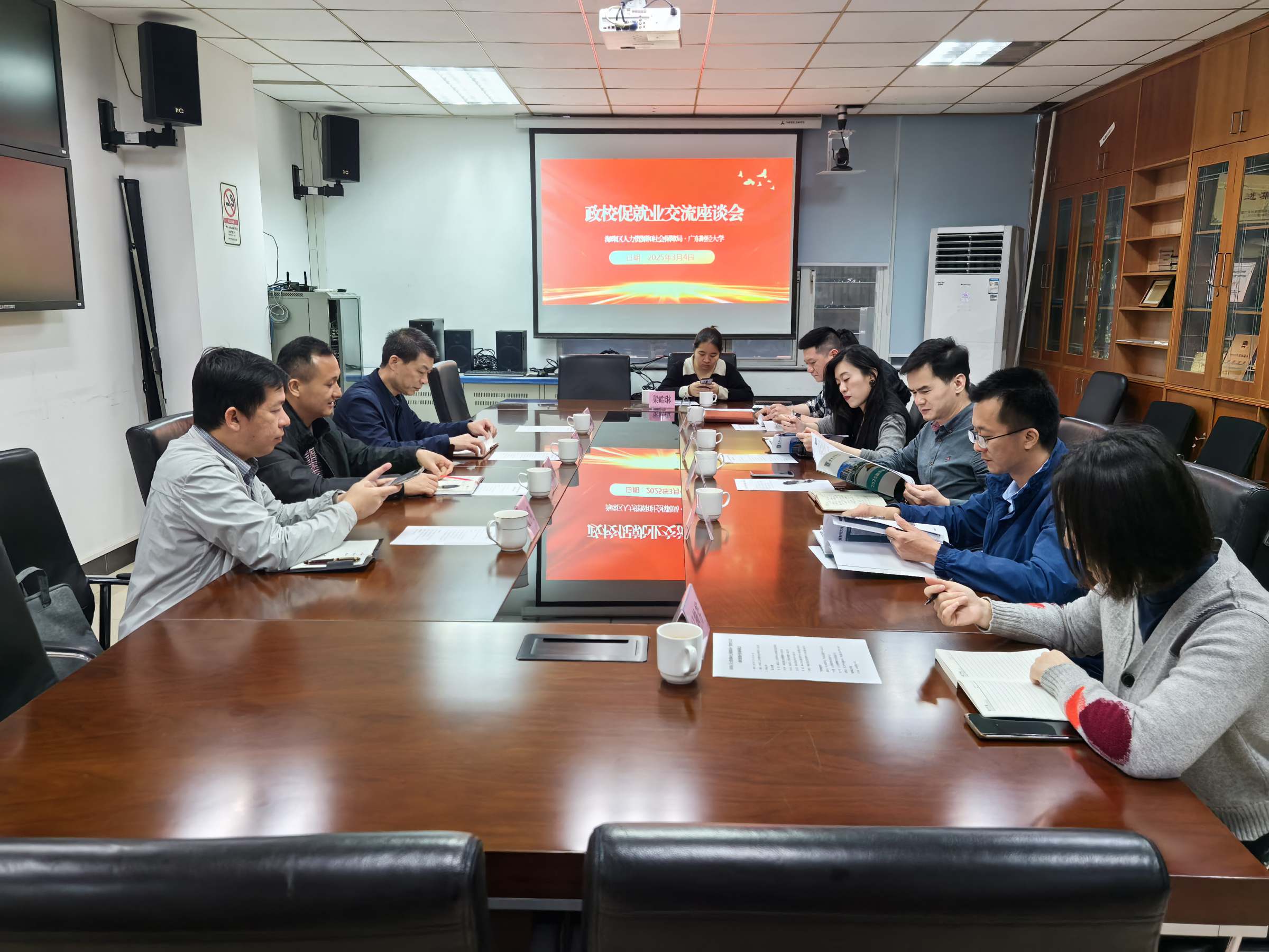 3月4日,为落实省委、省政府“百万英才汇南粤”专项行动计划,推进我校毕业生高质量充分就业,学工部副部长、学生就业指导中心副主任梁铿浩带队,公共管理学院党委副书记李天德、人力资源学院党委副书记阮方明等一行前往海珠区人力资源和社会保障局(以下简称“海珠区人社局”)开展“访企拓岗”促就业专项行动。活动旨在搭建校企合作桥梁,邀请海珠区内企业来校招聘,深入了解企业人才需求,为我校毕业生拓宽就业渠道。海珠区人社局四级调研员陆轶,海珠区人才办、就业中心、职业训练中心等负责人参加了本次活动。