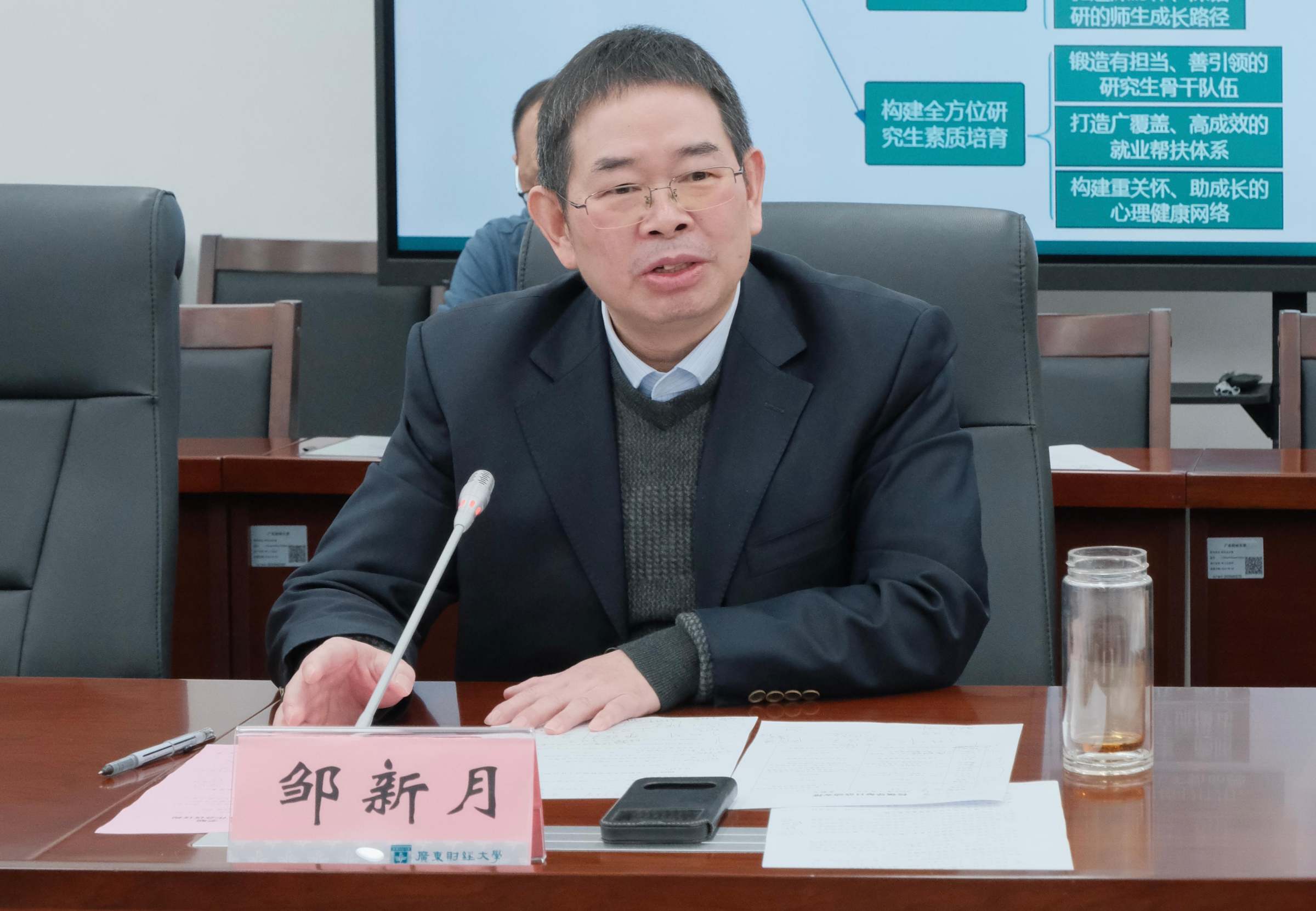 邹新月对研究生院的工作部署和交流的培养单位开展的工作给予了肯定,并对下一步学校学科建设与研究生教育工作提出了要求,即“一个规划、二项攻坚、五项工作”。一个规划是指做好学校“十五五”学科建设规划:从深化引领发展学科、重点发展学科、培育发展学科、支撑发展学科的分层分类发展机制,落实资源配置,解决“一科多院、交叉学科引领”两大核心问题三个方面加快构建“四梁八柱”学科体系。两项攻坚是指做好两项攻坚任务:全力以赴做好研究生就业、教育教学成果奖申报两项攻坚工作。就业是民生大事,各单位要多措并举促进学生高质量就业。要以高站位、实成效为导向,选好题,做好教育教学成果奖的申报工作。五项工作是指重点做好研究生人才培养内涵建设工程、研究生培养特色与竞争力提升工程、博士生招生培养高质量发展工程、研究生“一站式”社区全面提质增效工程、研究生育人环境品质工程五项工作。他要求大家在各自岗位上尽职尽责、守正创新、干事创业,做好学科建设与研究生教育重点工作,以一流学科建设和研究生教育,助推学校内涵式高质量发展。