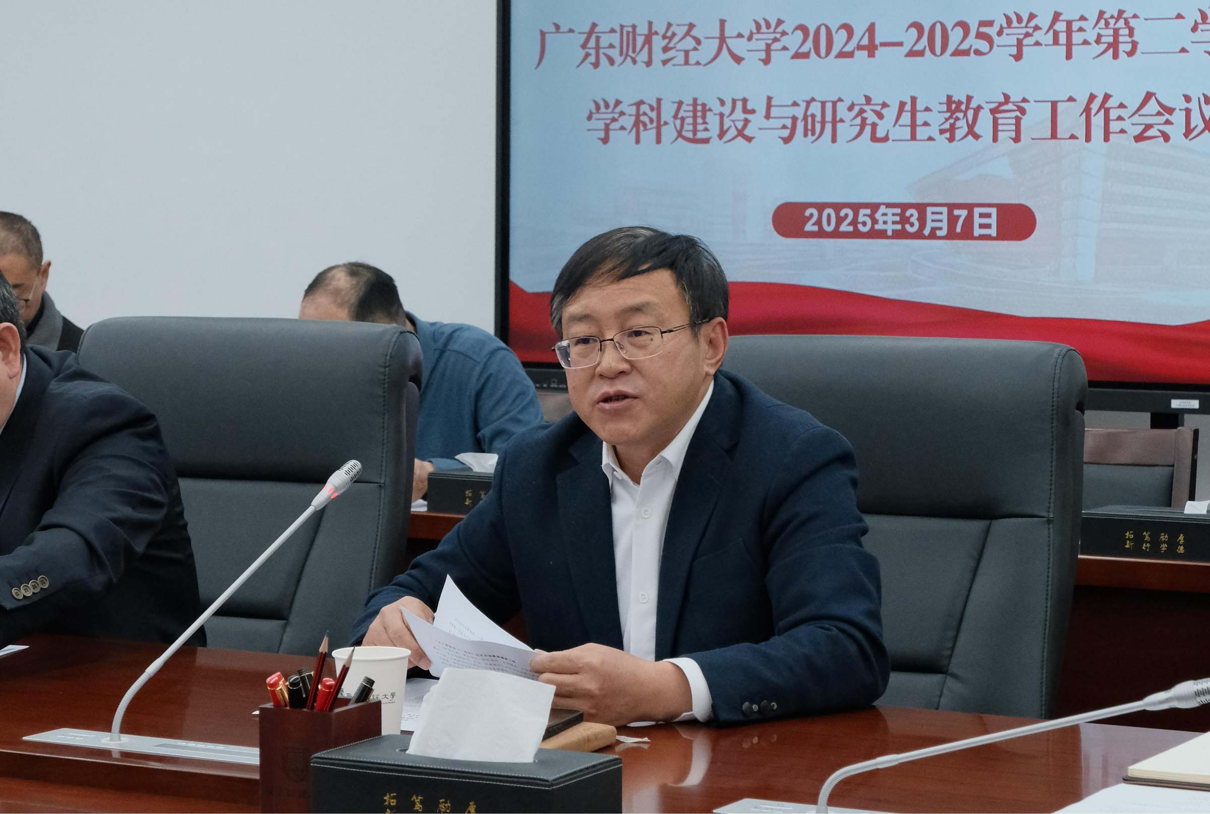 研究生院院长晏宗新简要回顾了2024年学科建设与研究生教育工作情况,明确了2025年的工作方向:以建成大湾区一流财经大学为战略目标,以内涵式高质量发展为动力,遵循“需求导向、创新引领、改革驱动、质量为先”的思路,以学科交叉融合为抓手,以创新人才培养模式为手段,以广财所长赋能湾区所需为生态,加快推进学科建设与研究生教育治理体系和治理能力现代化。他对本学期学科建设及研究生教育的重点工作“六大工程”进行了一一说明;副院长孙桃丽传达了上级安全工作会议精神和校领导关于安全工作的指示要求,分析了当前研究生工作安全形势,并对接下来的重点工作进行了部署和说明。
