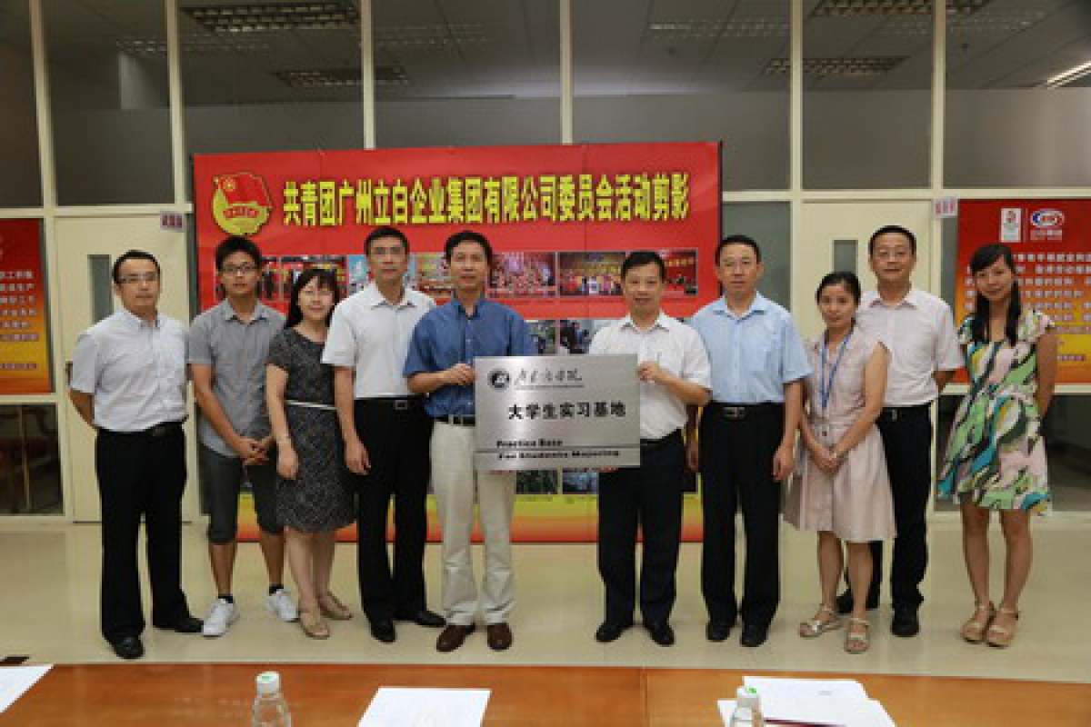 7月5日上午,工商管理学院与广州立白集团校外实践教学基地挂牌仪式举行。工商管理学院副院长吴金椿、人力资源研究中心主任董福荣,广州立白集团总裁陈凯旋、副董事长(副总裁)陈琼新、党委书记(副总裁)许晓东等参加了挂牌仪式。