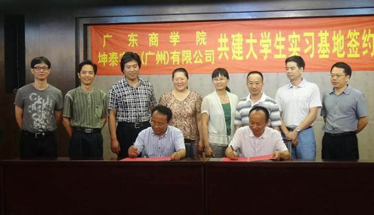 7月8日上午,艺术学院与坤泰实业(广州)有限公司举行了“广东商学院大学生实习基地”签约挂牌仪式。副校长于海峰、艺术学院党政领导班子、坤泰实业(广州)有限公司董事长林楚生以及双方师生员工出席仪式。