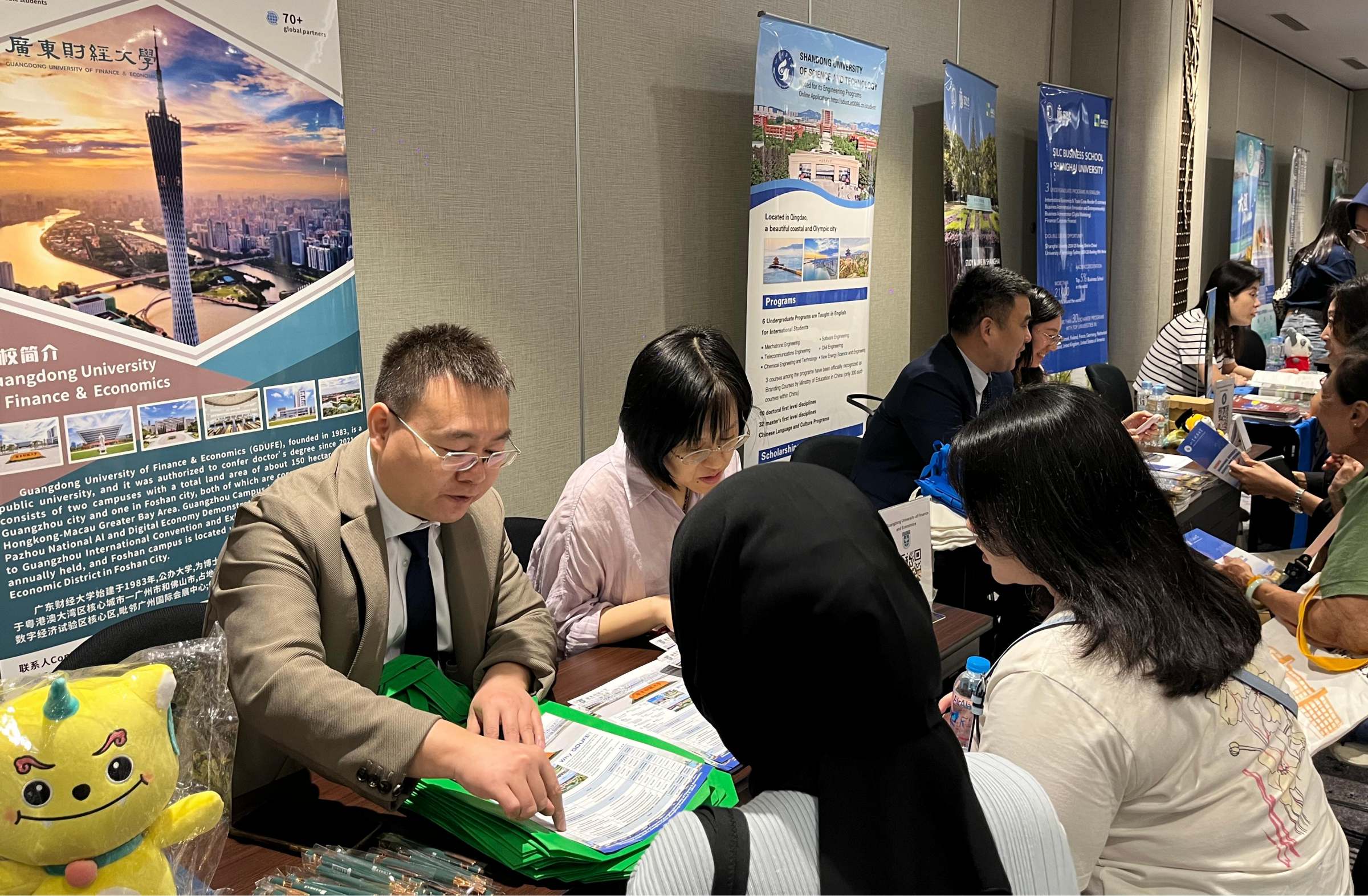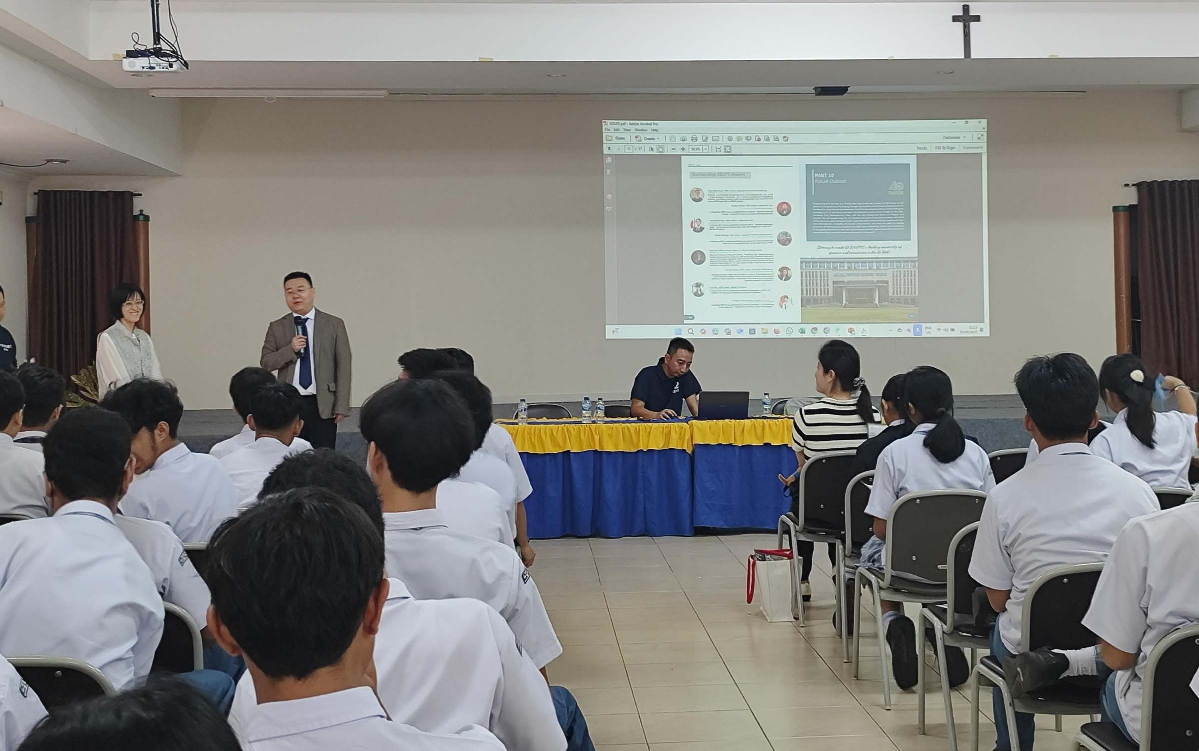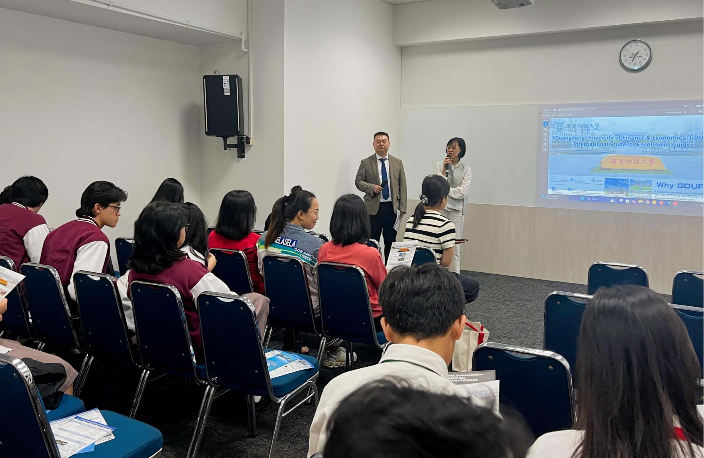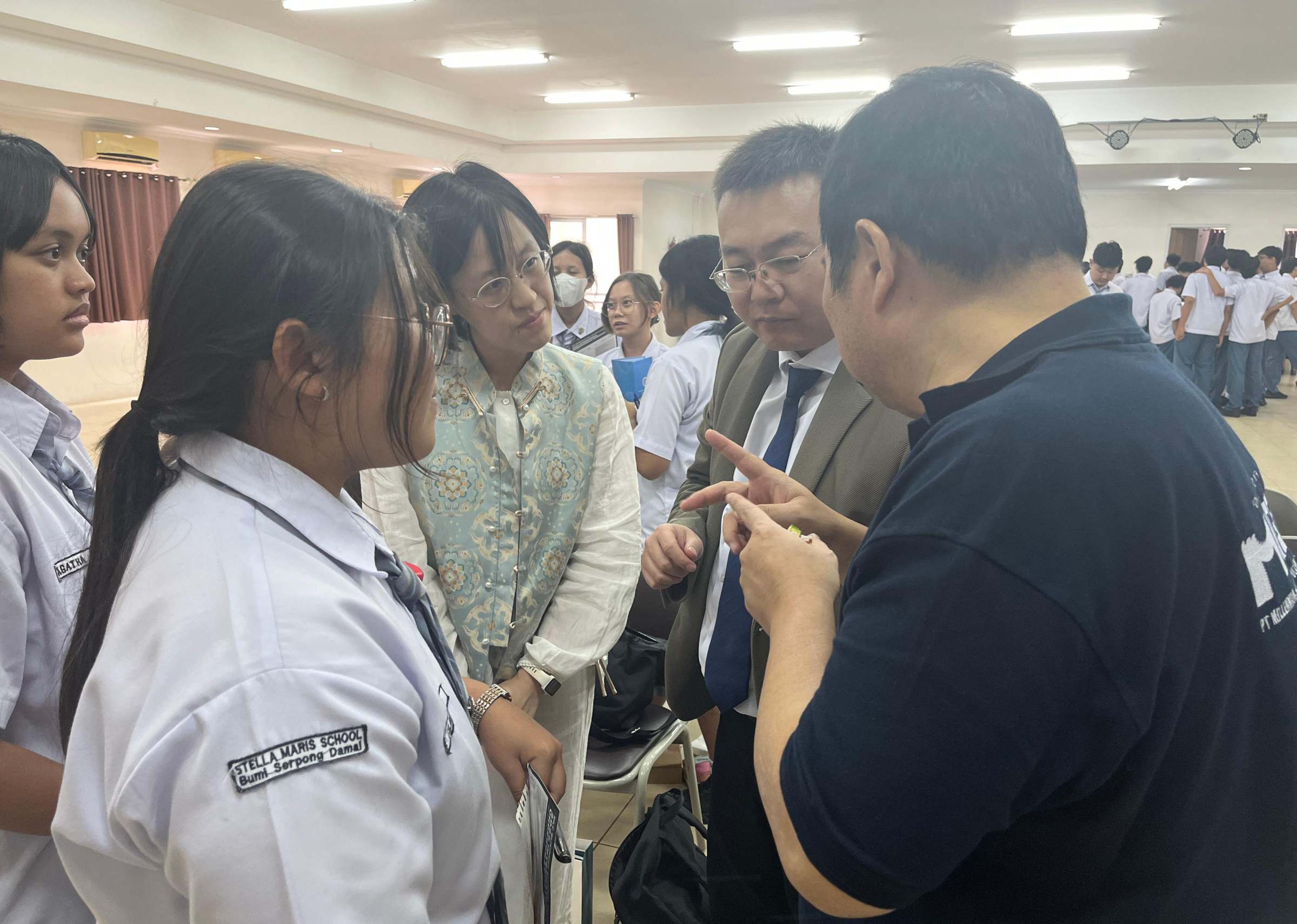 在印尼期间,招生团先后走访了Stella Maris School、Binus School Serpong、SMA Pangudi Luhur II Servasius等多所学校,举办了多场招生宣讲会。在宣讲会上,招生团成员结合视频及资料,详细介绍了学校的发展历程、学科优势、专业设置、师资力量以及丰富多彩的校园文化生活等内容,耐心解答了学校国际学生的招生政策、申请流程、奖学金设置等学生和家长关心的问题,引起了当地学生和教育界人士的浓厚兴趣。此外,招生团还参加了当地举办的教育展。在教育展现场,招生团设立了咨询展位,向来访的学生、家长以及教育机构代表发放学校宣传资料,介绍学校的国际学生教育项目。通过与他们的深入交流,招生团不仅宣传了学校的招生政策,还了解了当地家长及学生的求学需求和趋势,为今后制定更精准的招生策略提供了依据。