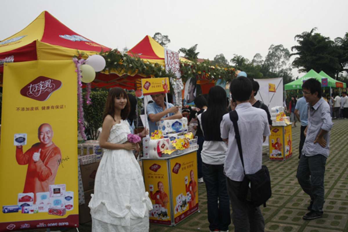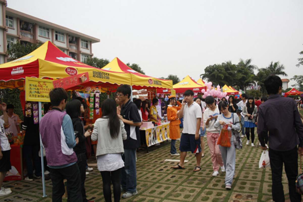 5月11日,由工商管理学院主办的第八届品牌策划大赛商品展销活动在三水校区中心花园举行。