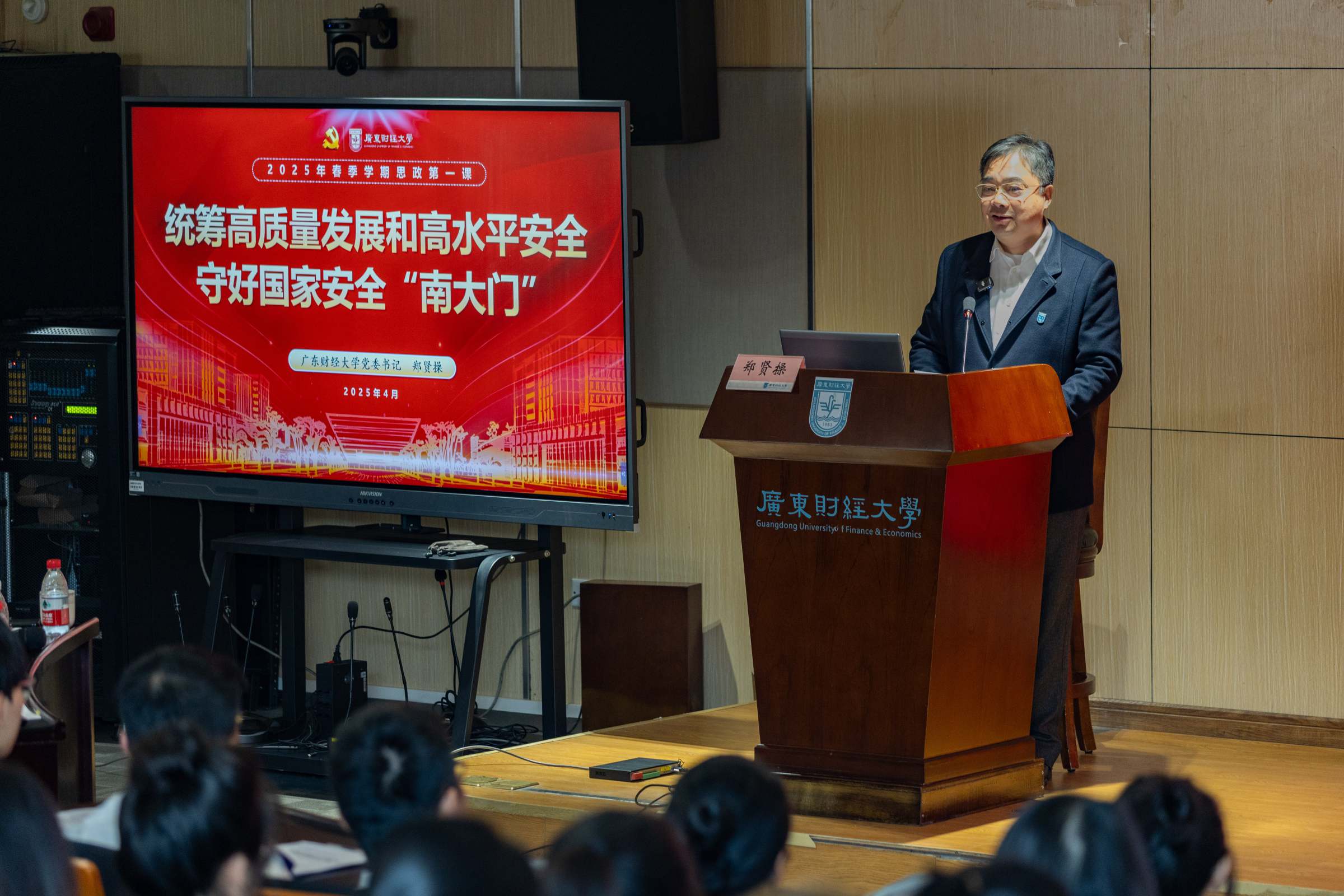 4月1日下午,校党委书记郑贤操以“统筹高质量发展和高水平安全 守好国家安全‘南大门’”为题,在佛山校区同心楼101报告厅为“青马工程”培训班学员讲授春季学期“思政第一课”,开启2025年春季学期学校“形势与政策”名师大讲堂第一讲。课程沿用“对分课堂”教学模式,马克思主义学院院长袁继红教授、青年教师廖志伟博士作为助教,协助授课。
