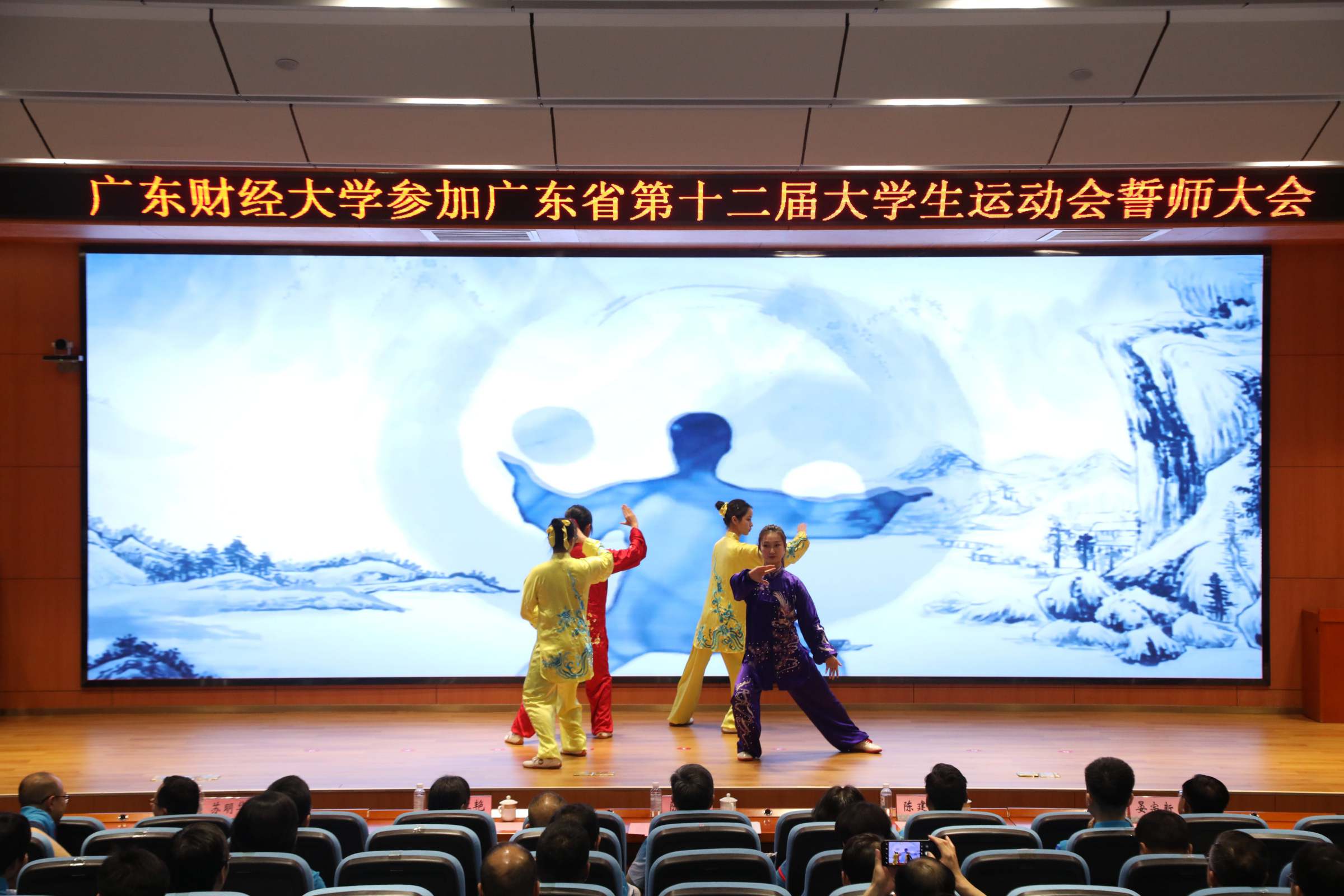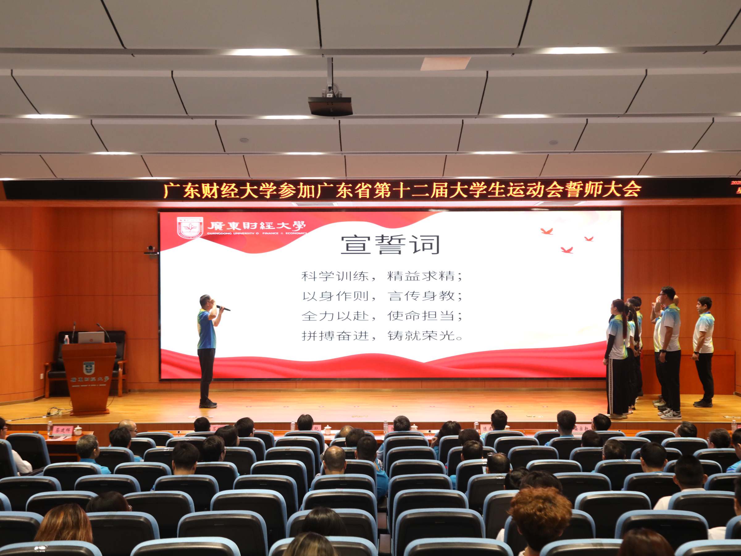 4月8日下午,广东财经大学参加省第十二届大学生运动会誓师大会在广州校区正心堂举行。副校长陈国栋、相关职能部门负责人,参赛学生所在学院党委书记、体育教学部全体教师及代表团全体教练员、运动员参加了本次大会。大会由代表团秘书长、体育教学部副主任蔡建辉主持。