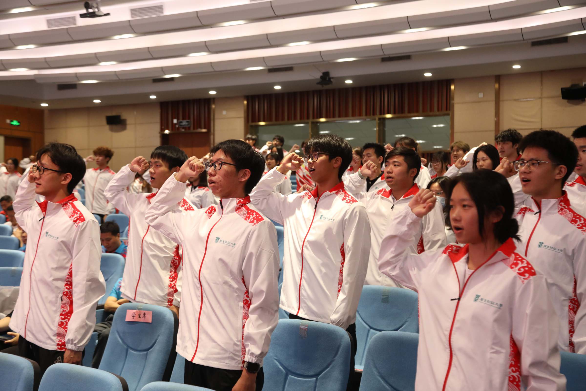 校女子足球队队长杨昶琳作为运动员代表发言,号召全体运动员“敢拼敢赢,以拼搏诠释青春”。全体运动员在杨昶琳带领下宣誓。