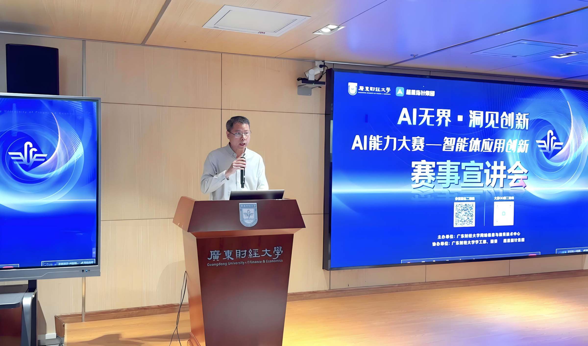 会上,网络信息与教育技术中心主任林聪介绍了赛事目的与筹备情况,让同学们深刻领会了大赛的重要意义与筹备情况。副主任谭健欣详细讲解了赛事流程及参赛指南,为同学们参赛指明了方向。超星指针集团进行了智能体案例展示,让同学们直观感受到了智能体应用的魅力,激发了同学们参赛热情。