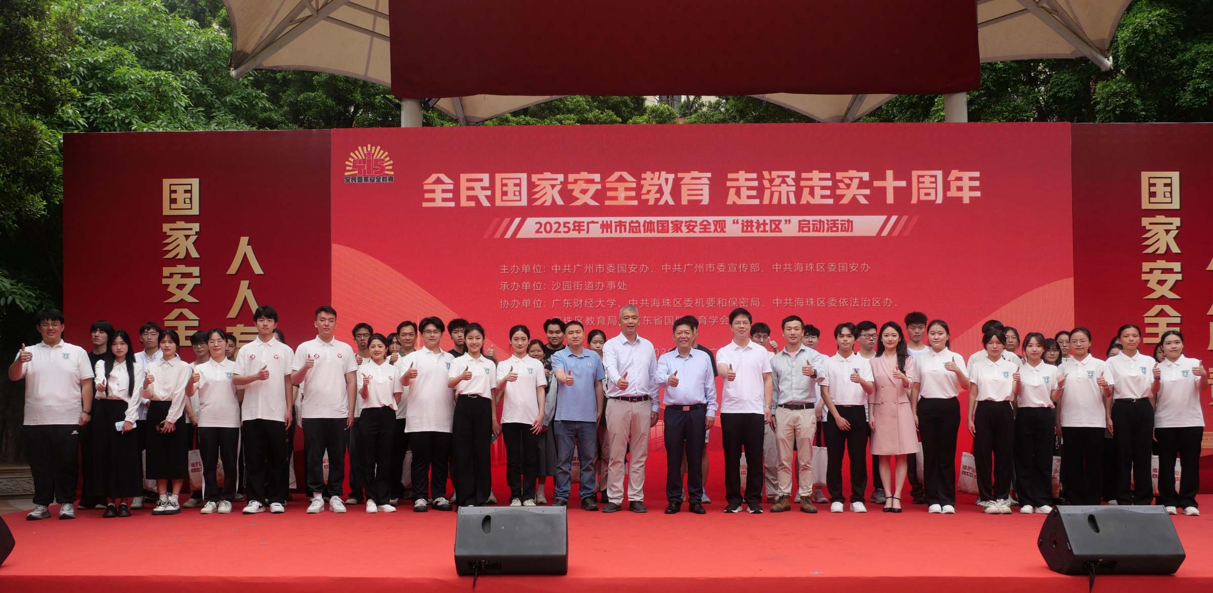 4月11日,我校总体国家安全观大学生宣讲团参加2025年广州市总体国家安全观“进社区”启动仪式,通过节目《十年》向广大市民群众开展总体国家安全观宣讲。省、市、区党委国安办有关负责同志,海珠区委和各街道相关负责同志,市民群众及中小学生代表及广东财经大学、西南政法大学学生代表等500多人参与活动。我校党委副书记刘祖华出席活动并致辞,校团委书记朱戈、马克思主义学院党委书记张小洁、院长助理廖志伟,党委学生工作部李林老师和西南政法大学国家安全学院江焕辉副教授出席活动。