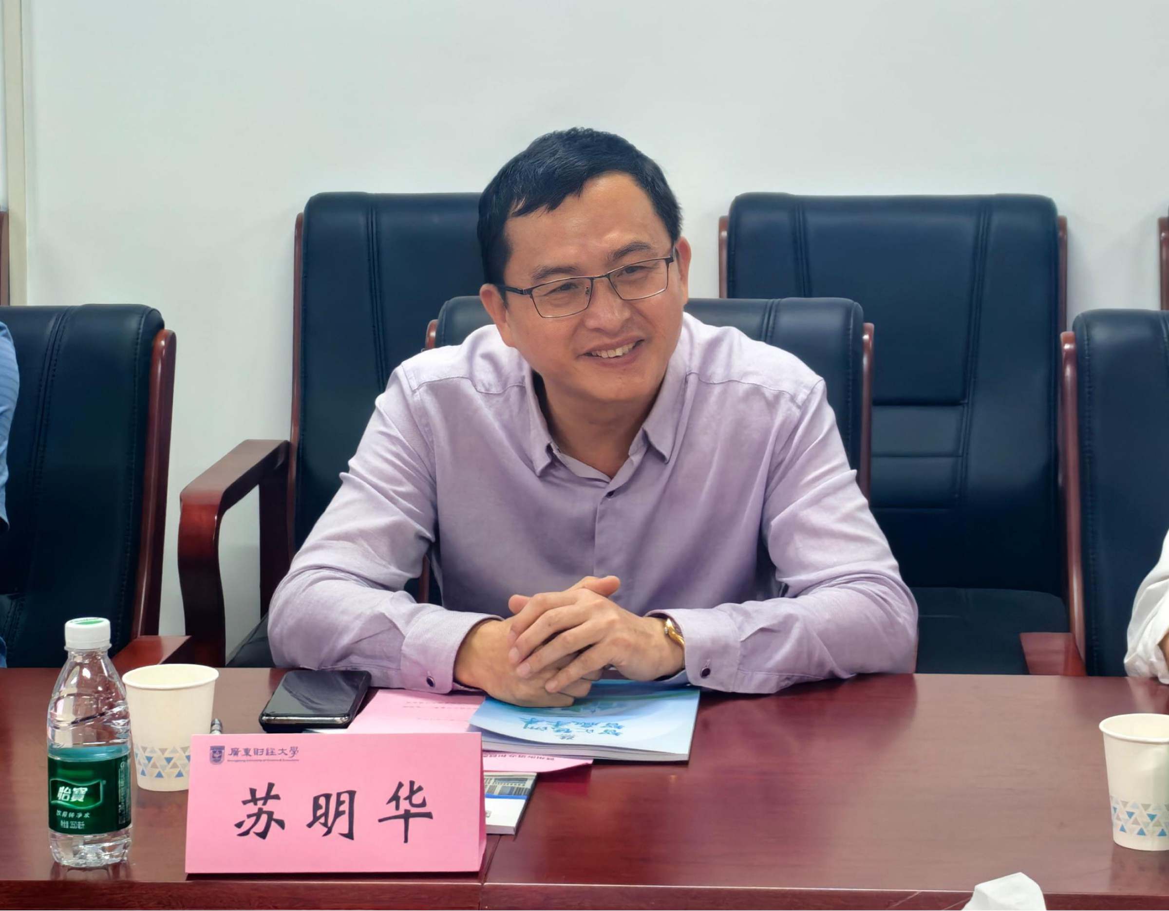 苏明华对琶洲街道办和琶洲商会一行的到访表示热烈欢迎,介绍了学校的发展历程、专业设置、人才培养及毕业生就业创业等情况。他围绕建立学校与琶洲街道和商会常态化沟通交流平台,共建学生实习就业与企业用工招聘动态协同机制,开展企业进校园入学院、学生进园区入企业双向赋能活动,推进“校-政-行-企”协同合作等事项提出了意见建议。