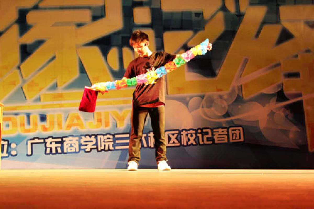 在第二部分的“才艺表演”中,选手们都拿出了自己的看家本领,有极具特色的粤剧、饱含深情的朗诵、时尚动感的B-Box等。其中,选手吴育材带来的魔术表演《特异功能》以炫目的花招,纯熟的技巧紧紧吸引住观众的眼睛,赢得全场欢呼。