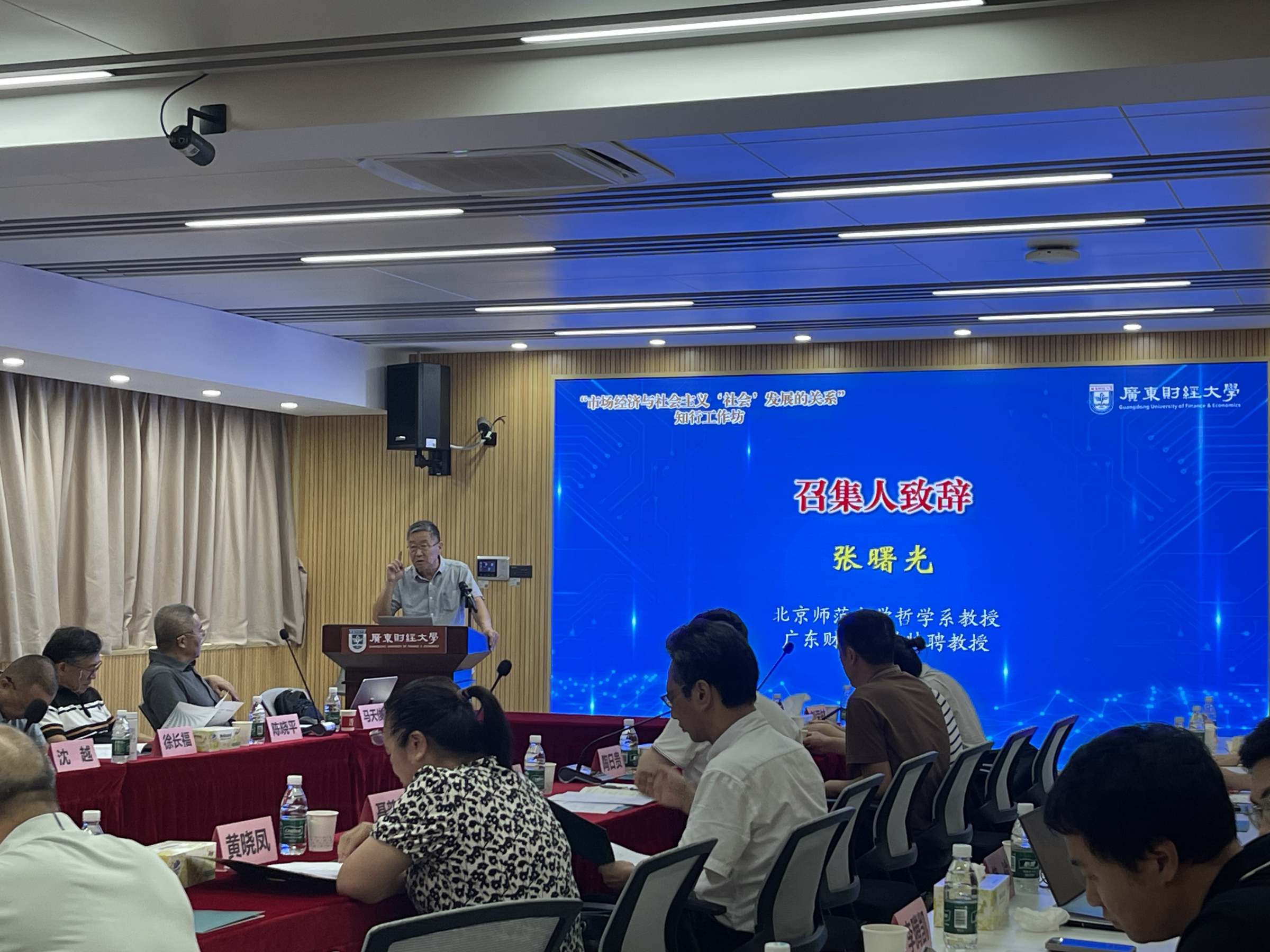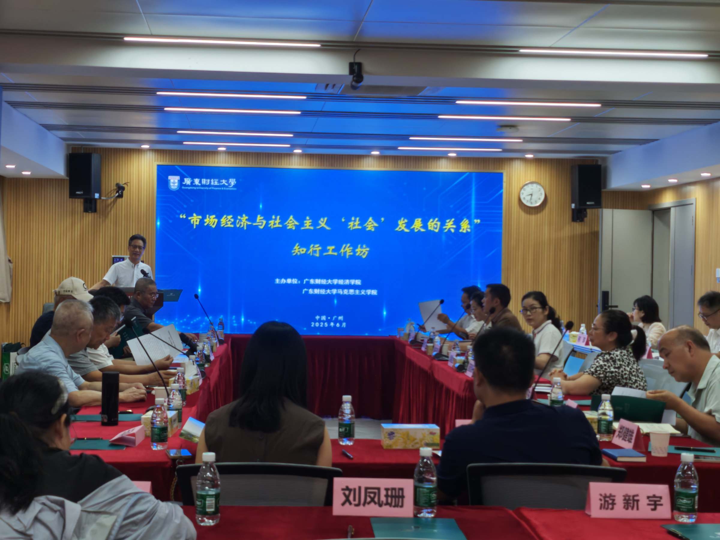 6月20日,我校经济学院与马克思主义学院在广州校区立德楼116室联合举办“市场经济与社会主义‘社会’发展的关系”知行工作坊。来自北京师范大学、广东省社会科学院、中山大学、华东政法大学、华南师范大学、深圳大学等多所高校的专家学者,与我校经济学院、马克思主义学院、法学院的专家老师及马克思主义理论专业研究生共50多人参会,围绕市场经济与社会主义社会发展的理论与实践问题展开研讨。学校党委副书记刘祖华出席会议并致辞,经济学院院长聂普焱教授主持开幕式。