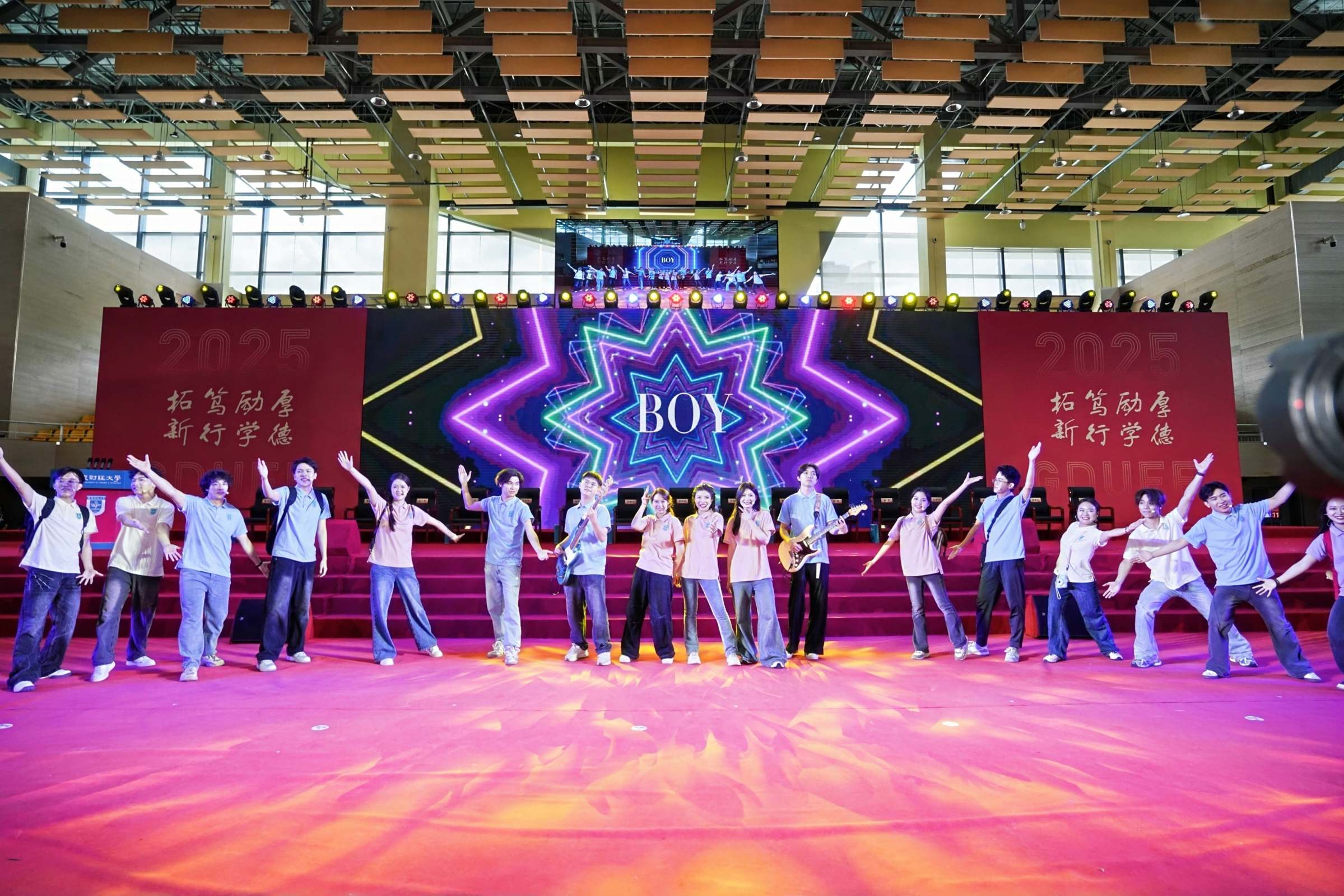“厚德、励学、笃行、拓新,这里集结着青春的力量。铸就那求知敬业的品格,迎接那充满希望的远航。”全场合唱校歌。莘莘学子,即将带着热爱,奔赴山海,汇入蓬勃发展的时代征程中。“奋进,奋进,为中华之辉煌!”