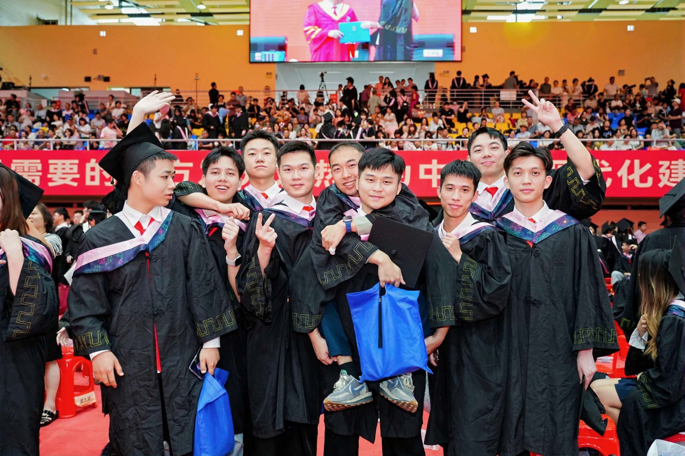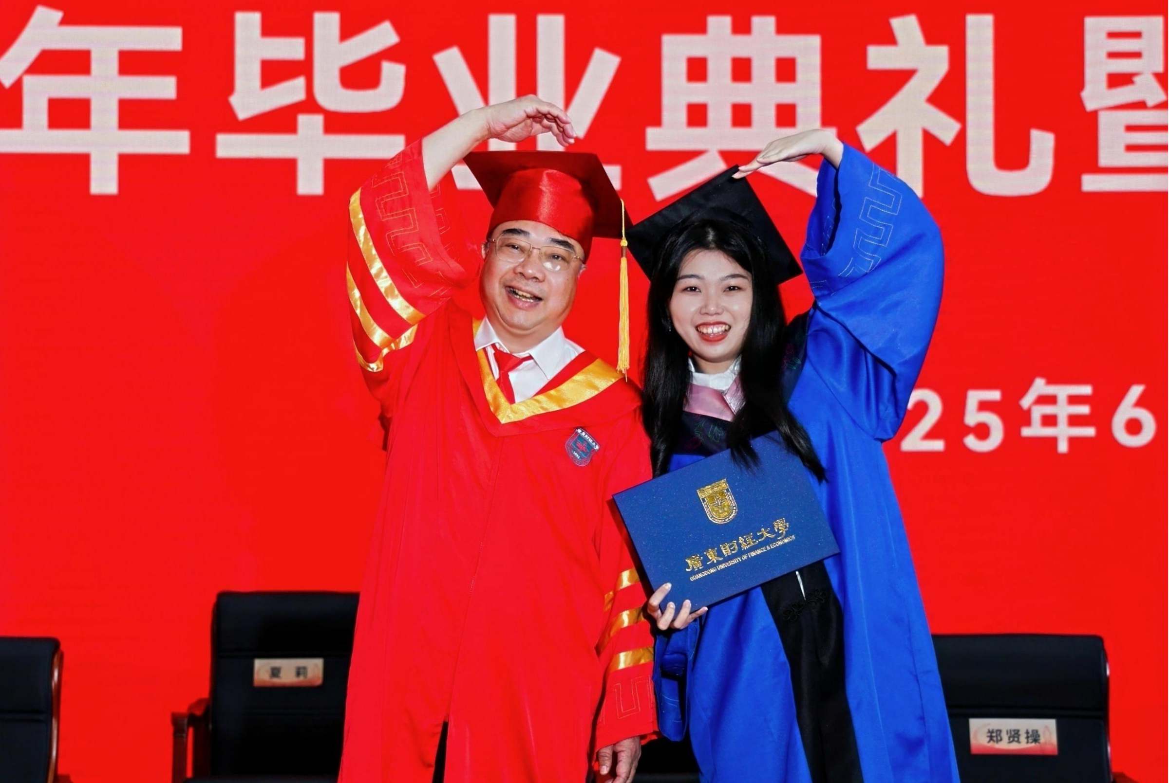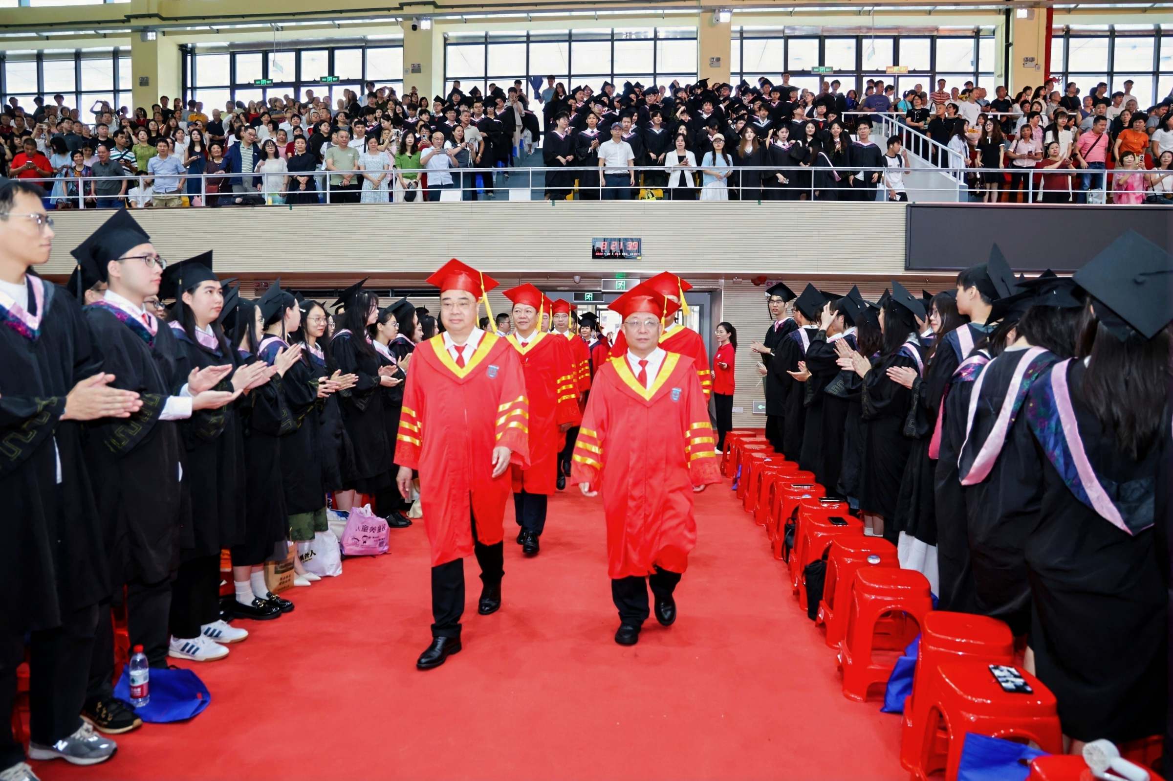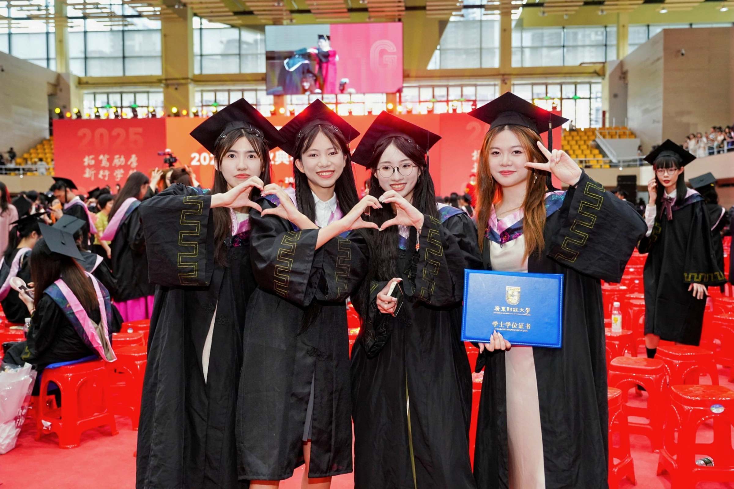 6月27日,广东财经大学2025年毕业典礼暨学位授予仪式在广州校区体育馆举行。校领导,学校学位评定委员会委员,各学院党政领导、教师代表、毕业生家长代表在这个难忘的日子齐聚一堂,共同见证6994名本科生和1231名研究生同学圆满完成学业,开启人生新篇章。