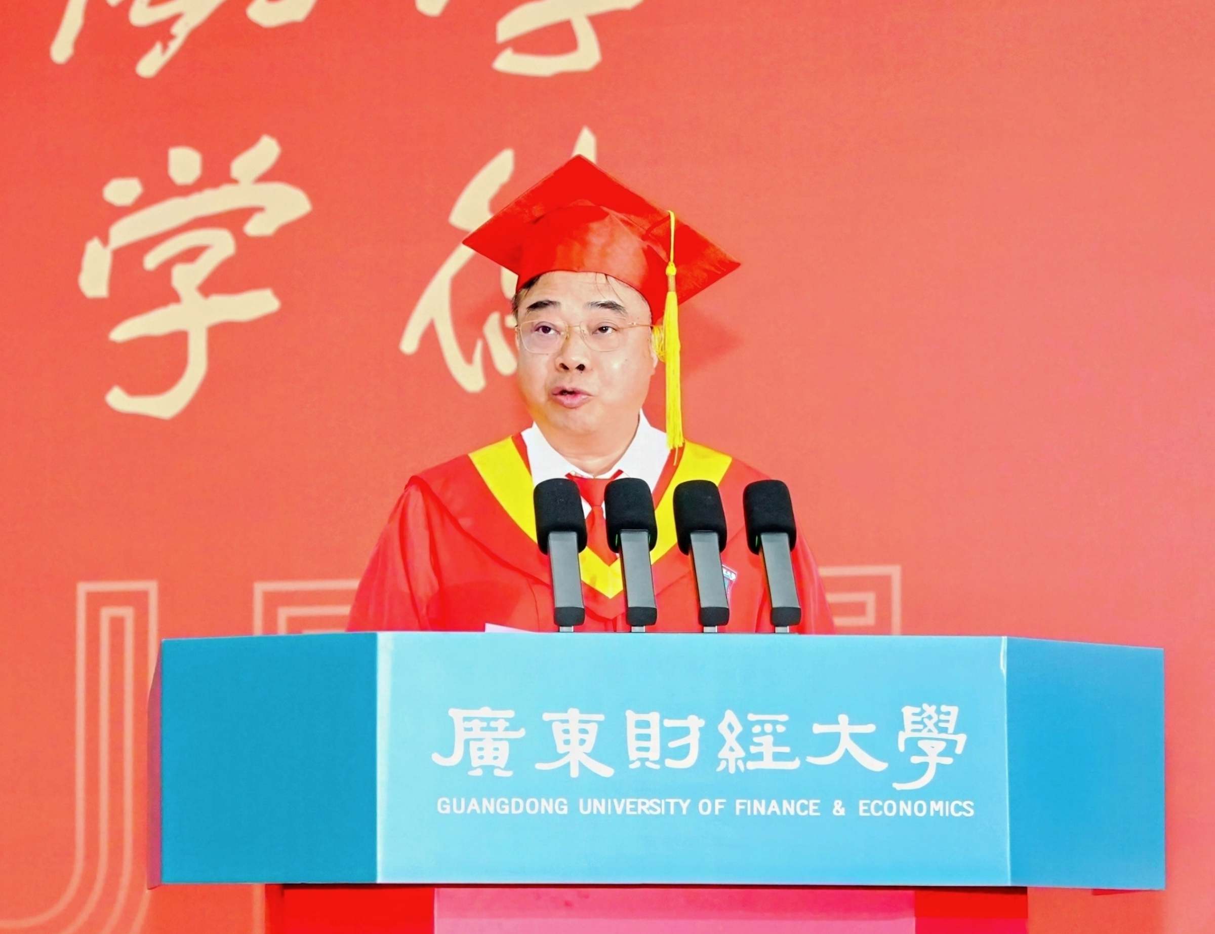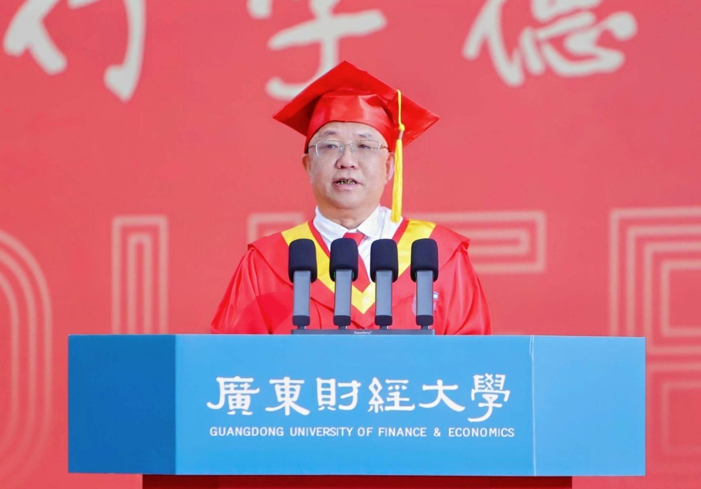 数字经济学院院长王方方教授在上午场的典礼上作为教职工代表发言。他说,“只要你们喊一声‘小财小财’,母校的‘我在’就一定会跨越时空回应你。广财永远是大家的坚强后盾”。财政税务学院院长李林木教授在下午场的典礼上作为教职工代表发言。他以人生三重境界为引题,鼓励并祝愿毕业学子保持进取、平常、乐观、感恩的四重心态。