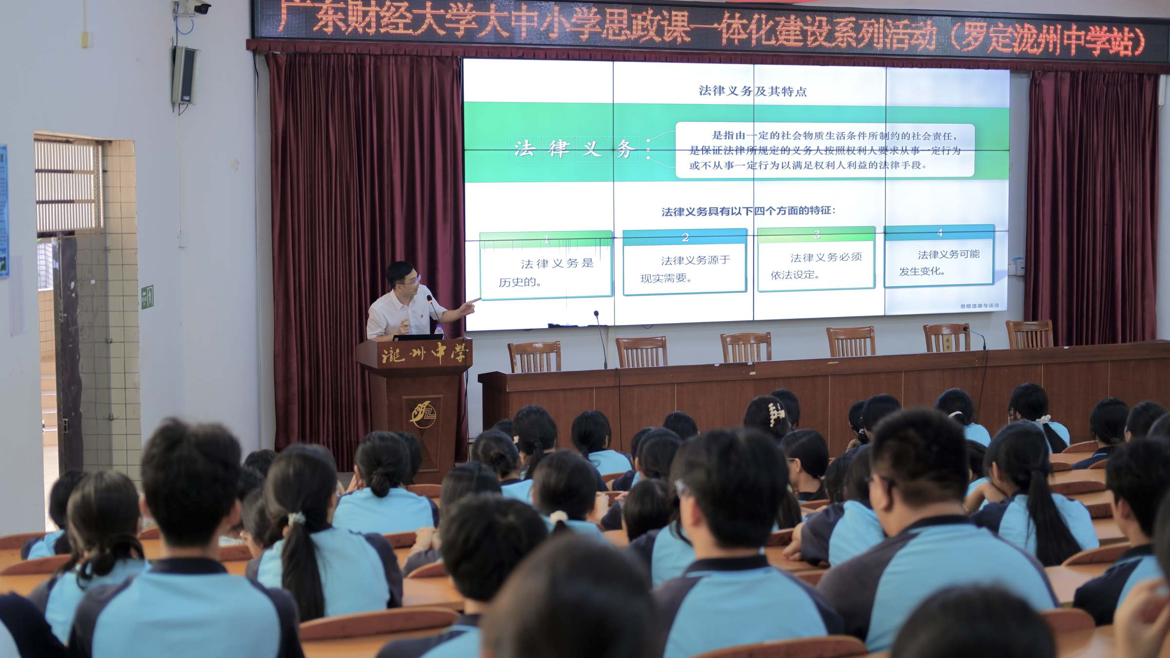 孙云山博士给泷州中学学子们作题为《养成正确的权利义务观》的授课。通过真实案例剖析和互动问答,将法律知识转化为生动有趣的课堂体验,引导同学们树立法治思维,提升法治素养,依法行使权利和履行义务。此外,他还围绕改进工作作风、密切联系群众、厉行勤俭节约等内容,为罗定船步中学教师们开展专题讲座。