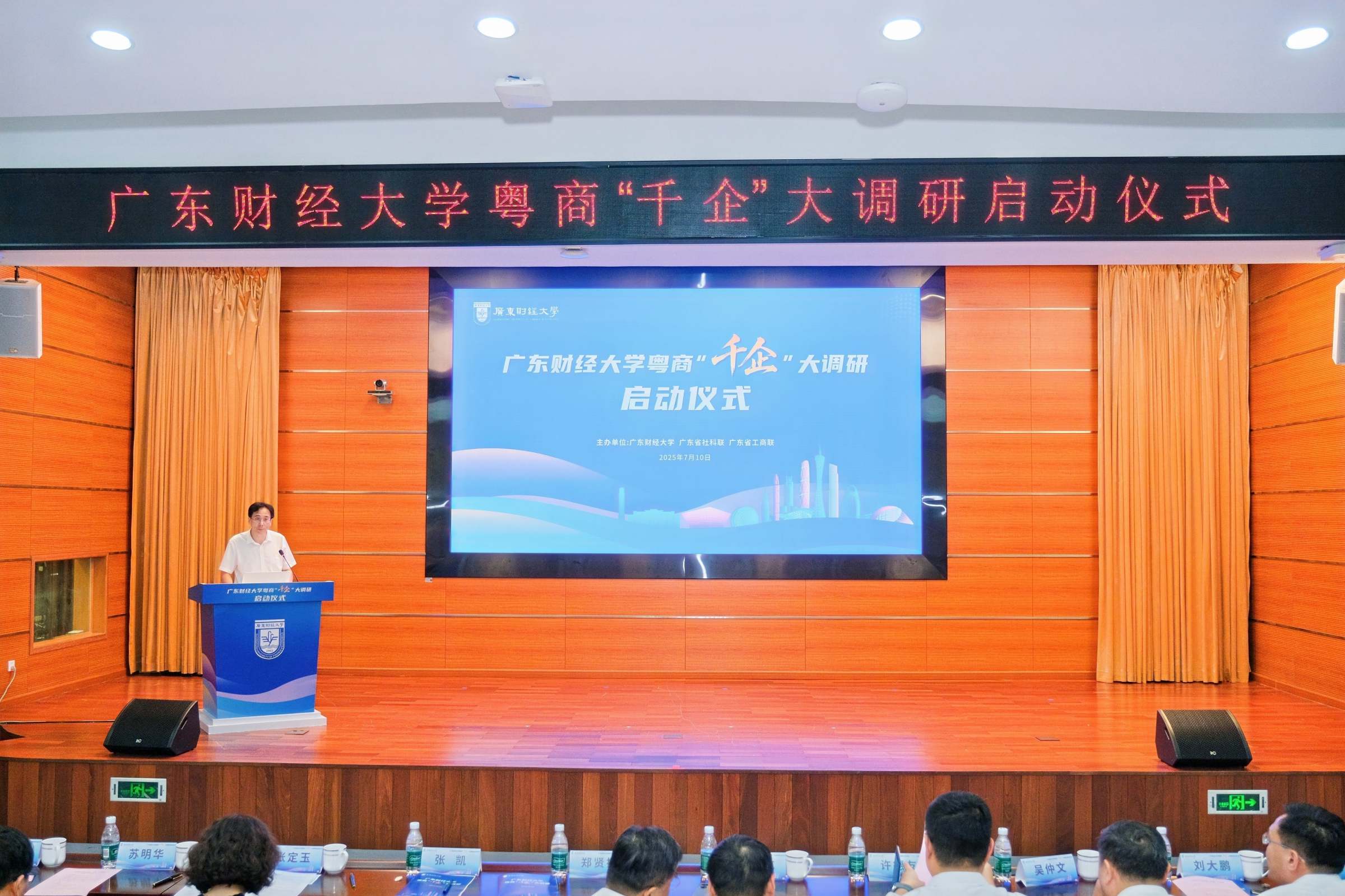 7月10日,一场覆盖广东21个地市,1000余家民营企业的粤商“千企”大调研活动,在广东财经大学正式启动。广东省社科联党组书记李宜航、校党委书记郑贤操、省社科联专职副主席许德友、副校长张凯、省社科联学术规划部主任吴仲文、省工商联宣传调研部副部长张定玉、企业家代表、学校相关部门负责人、师生代表共200余人参加启动仪式。
