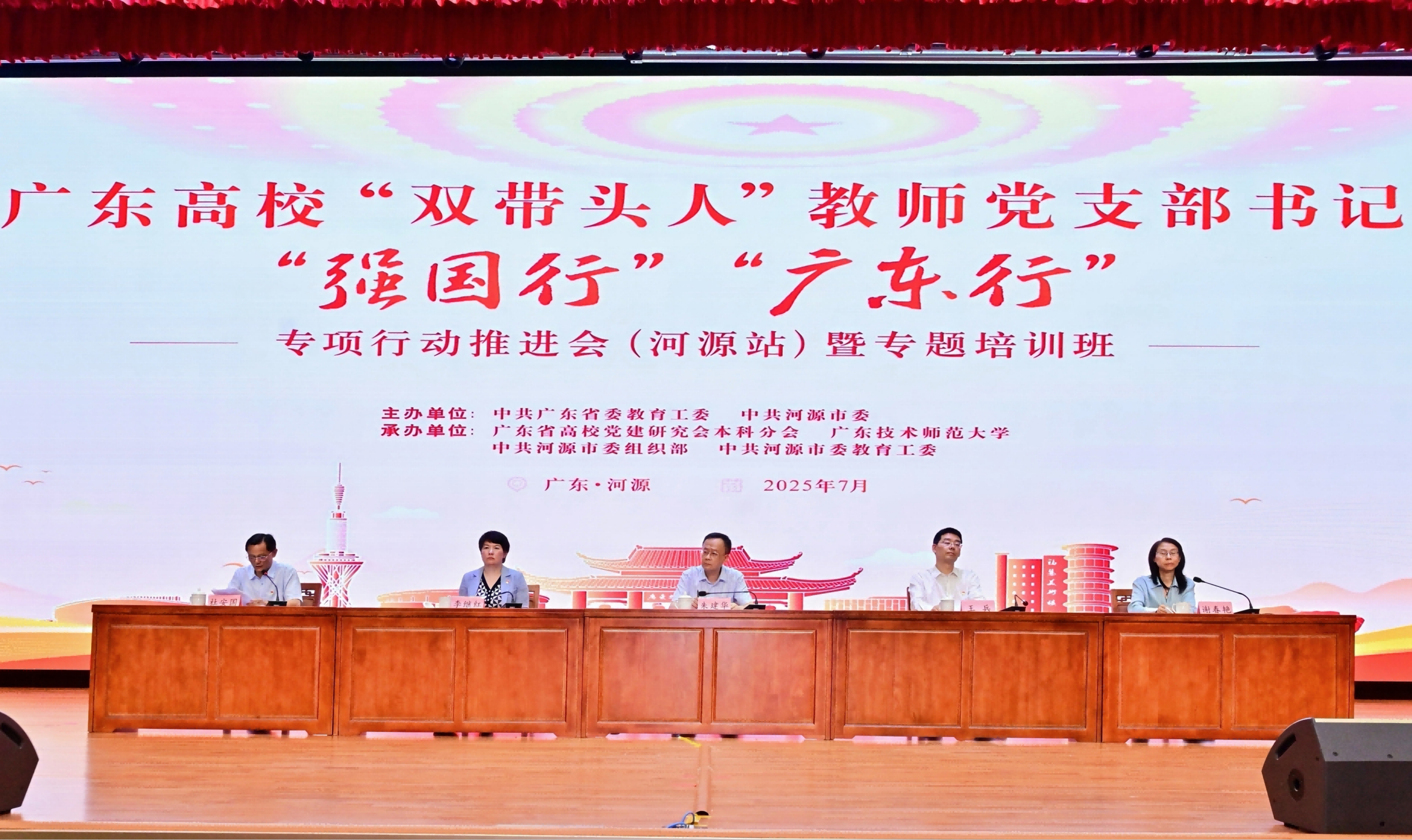 培训期间,教育部思想政治工作司党建统战处处长林成涛、教育部全国高校“双带头人”教师党支部书记“强国行”专项行动办公室常务副主任李继红以及河源市有关负责同志围绕《扎实推进“强国行”专项行动,示范引领高校广大师生为强国建设贡献力量》《“强国行”专项行动探索与实践》《“强国行”“广东行”地方工作实务探索》等主题作专题讲座。