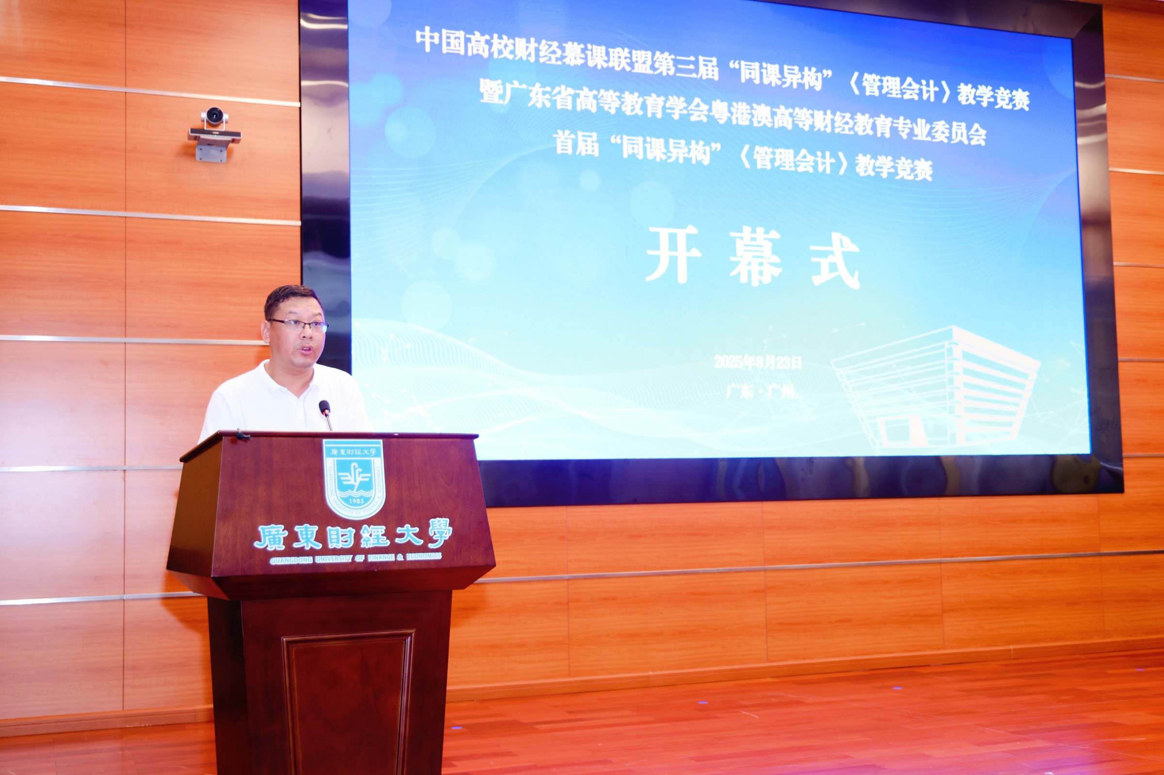 8月23日至24日,中国高校财经慕课联盟第三届“同课异构”教学竞赛“管理会计”课程竞赛暨广东省高等教育学会粤港澳高等财经教育专业委员会首届“同课异构”教学竞赛“管理会计”课程竞赛在我校举办。广东省高等教育学会秘书长贺义梅,我校副校长陈国栋,以及来自35所财经高校的评委和参赛教师共同参加开幕式,开幕式由我校教务部部长陈建林主持。