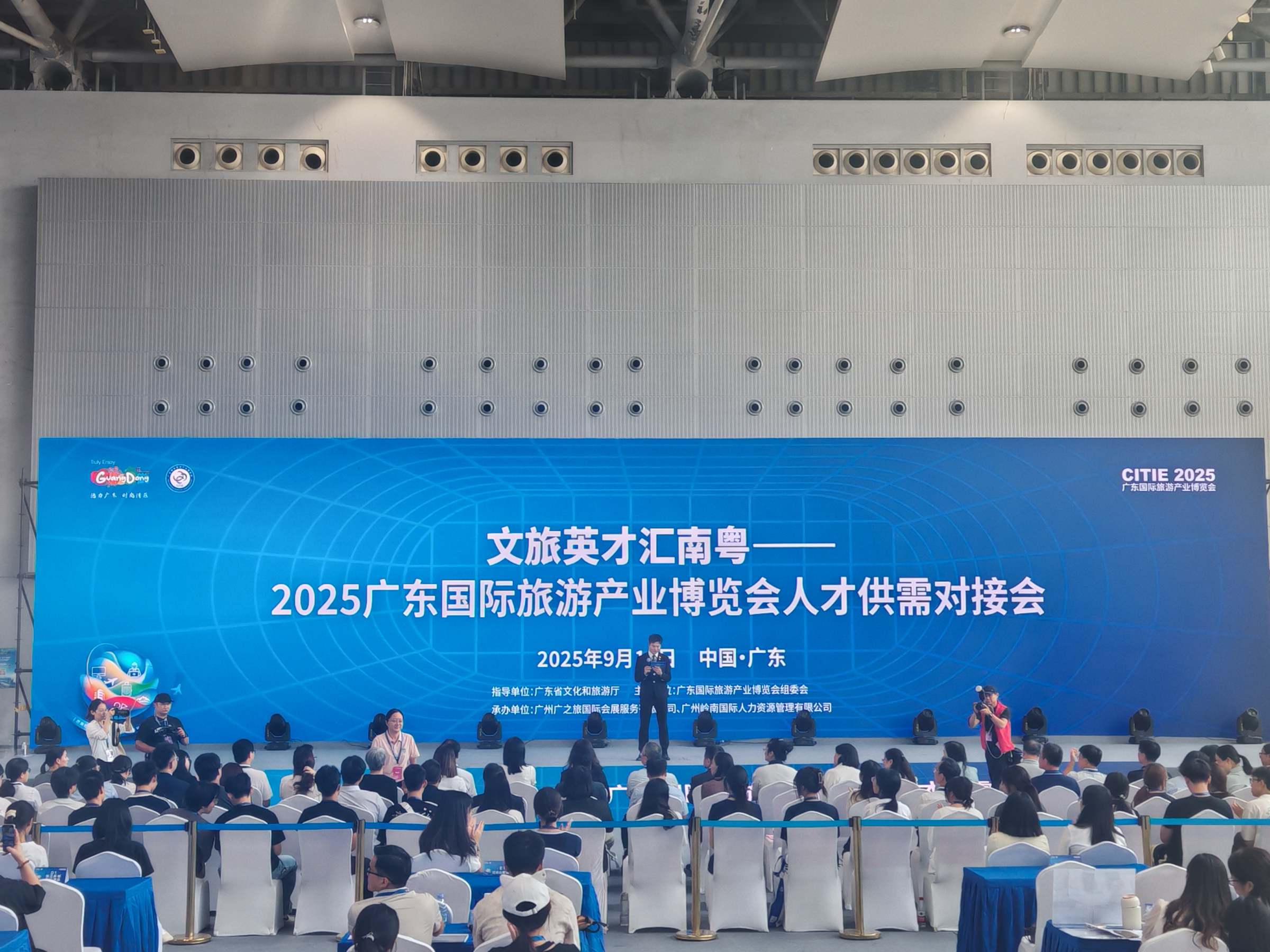 据悉,本届旅博会吸引了全球近50个国家和地区的参展机构、超100个优质旅游目的地及500余家文旅企业参与。作为旅博会首次举办的“文旅英才汇南粤”人才供需对接会,本次活动围绕文旅人才供需对接、创业指导、职业技能展示三大板块,现场设置了综合类文旅、酒店民宿、旅行社、景点景区、数字文旅等多个主题专区,组织参会企业与高校学生开展面对面交流对接。