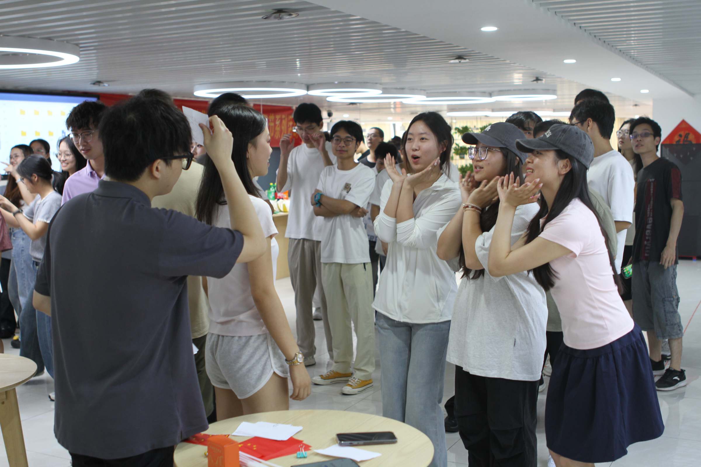 茶话会后,师生前往东塔大厅参与趣味互动活动。全体师生共同观看了国庆升旗仪式视频,感受爱国氛围;“家乡风土分享”环节中,学子介绍了各地国庆活动、中秋习俗与地域文化;“你画我猜”游戏环节,师生进一步增进了默契。