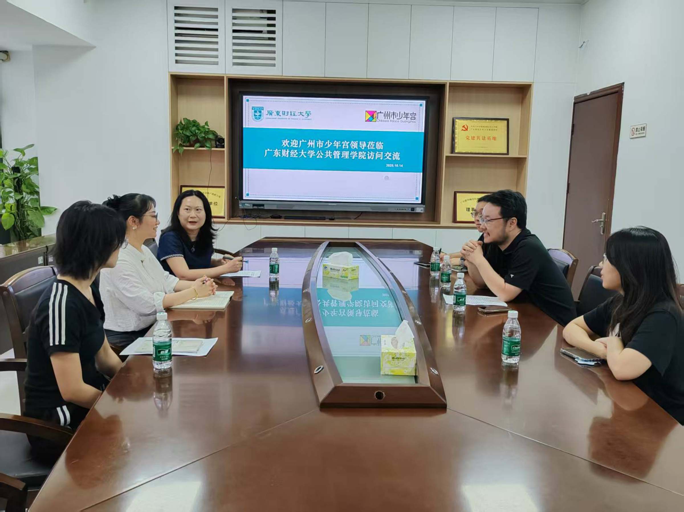 10月14日,我校大学生实践基地广州市少年宫来公共管理学院开展合作交流。公共管理学院书记聂华丽、应用社会学系主任蔡静诚与广州市少年宫融合教育部的代表就特殊儿童服务项目达成深度合作共识。