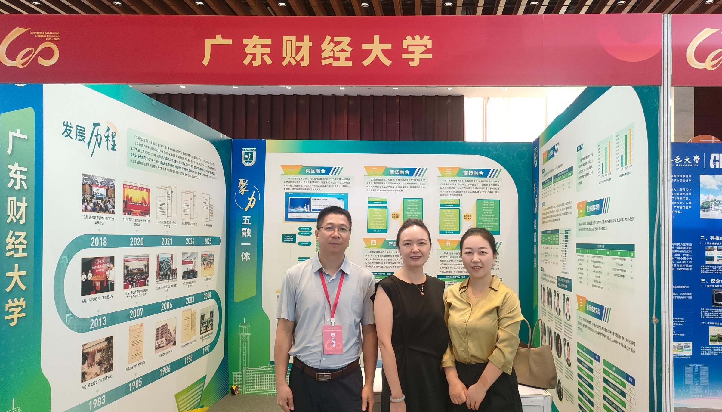 大会期间,我校教务部精心策划并布置了“本科教育教学成果”专题展板,系统呈现了学校发展历程、学校“五融一体”人才培养特色(湾区融合、商法融合、商技融合、产教融合、双创融合)及育人成效等方面的典型经验与标志性成果。展览现场吸引了与会领导、兄弟高校代表及专家学者的驻足交流。