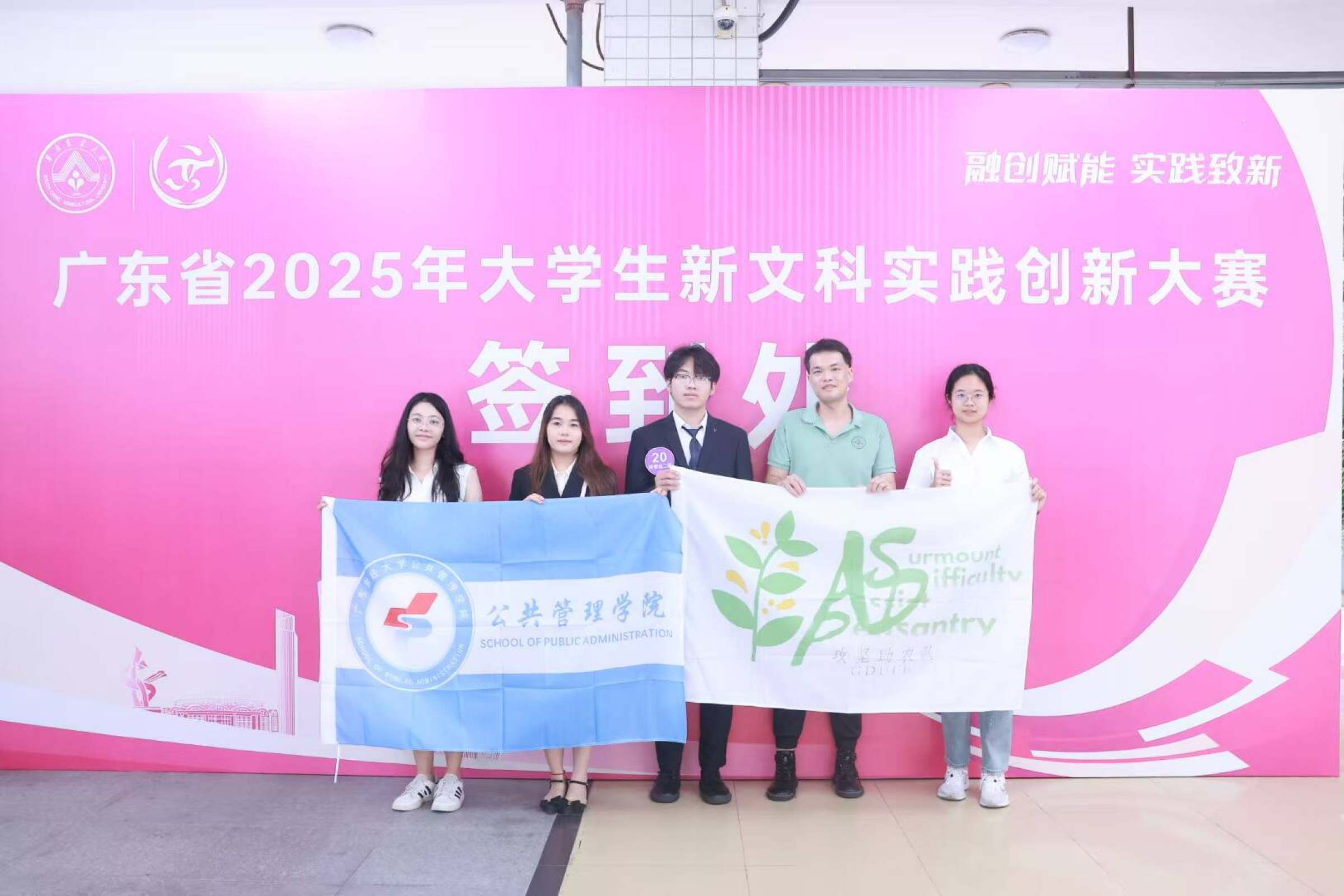 近日,广东省2025年大学生新文科实践创新大赛现场赛在华南农业大学落幕。本次大赛由广东省教育厅指导,广东省高等教育学会与华南农业大学联合主办,以“融创赋能,实践致新”为主题,旨在深化新文科建设,推动文科教育与社会实践深度融合。全省共有39所高校的219支队伍参赛,经过激烈角逐,我校推荐的8支团队凭借扎实的实践成果与创新表现,最终斩获金奖2项、银奖5项、铜奖1项的佳绩,学校同时荣获优秀组织奖。
