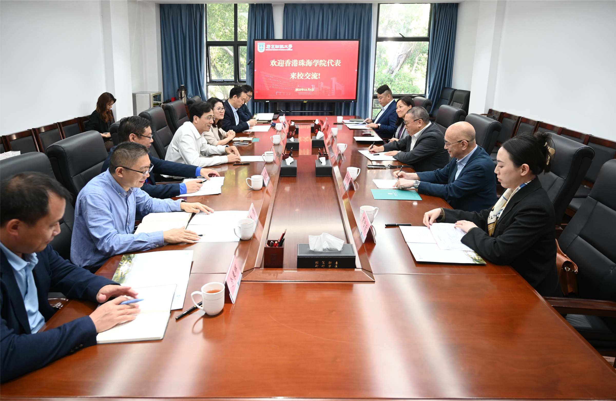 张凯对陈汉宣一行的到访表示欢迎,并介绍了我校在学科建设、人才培养以及与港澳地区教育合作方面取得的成效。他回顾了两校自2023年以来的交流历程,并指出今年4月签署的校际合作备忘录为双方未来加强合作奠定了更为坚实的基础。陈汉宣感谢学校的热情接待以及对双方合作的重视,并介绍了香港珠海学院的办学历史、学科专业、办学特色、师资队伍等情况,表达了与我校开展深度合作的意愿。