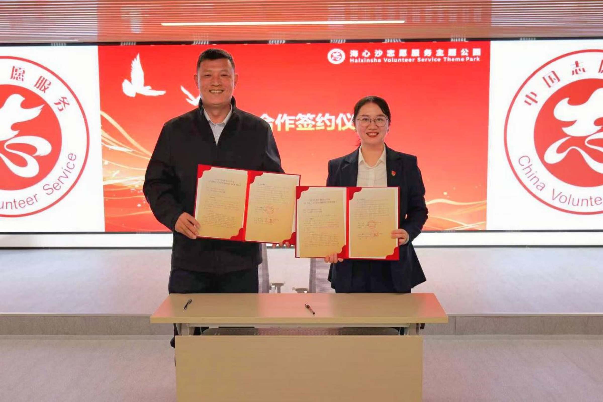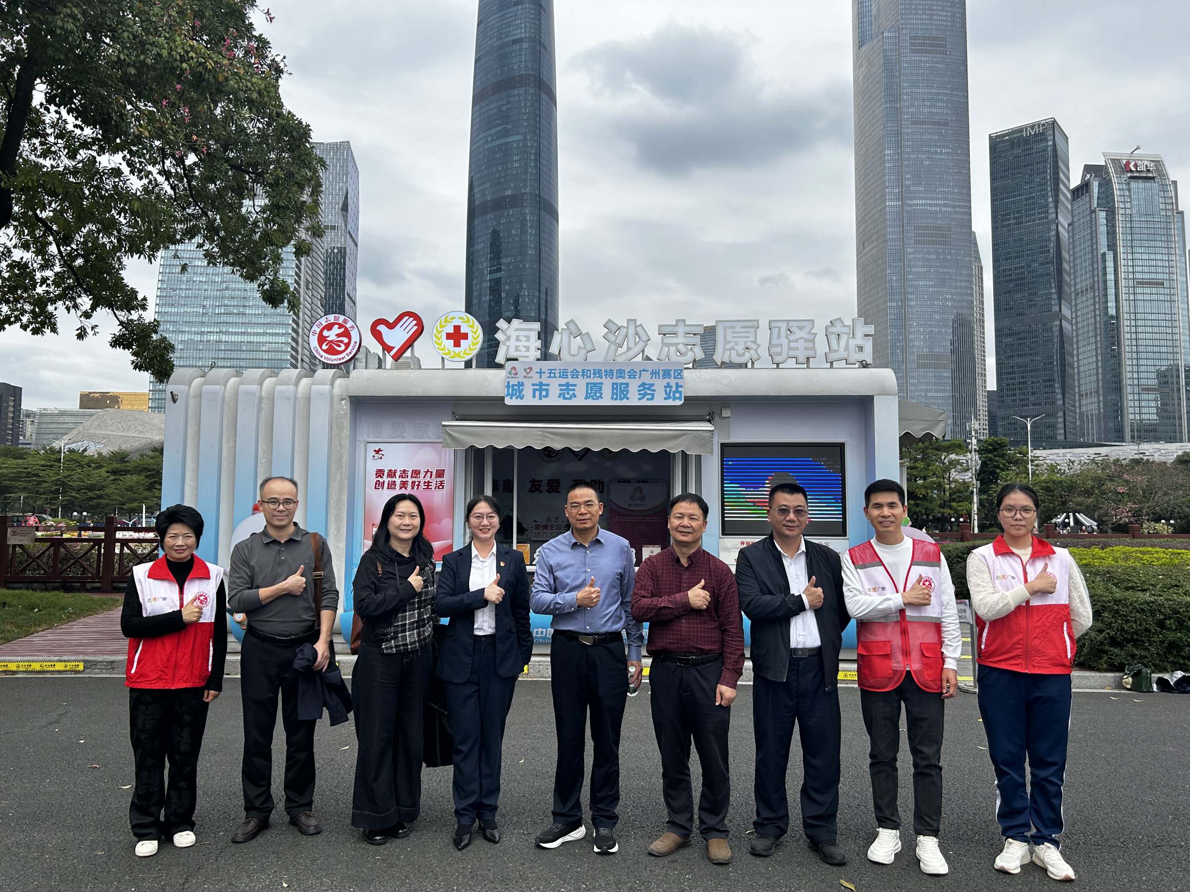 仪式上,首批入选海心沙志愿服务主题公园的21个孵化项目被授予了入选证书。公共管理学院与中共广州市委社会工作部签订了党建共建协议,双方就校地协同育人与志愿服务工作开展深度合作。仪式后,与会领导嘉宾为我校志愿者代表发放了全运会城市志愿服务装备,为海心沙志愿服务驿站的全运会城市志愿服务工作注入青春力量。随后,公共管理学院与中共兴宁市委社会工作部一行参观海心沙志愿服务主题公园,考察公园的功能定位、服务内容及志愿驿站的运行模式,了解公园在志愿服务方面发挥的平台作用情况。