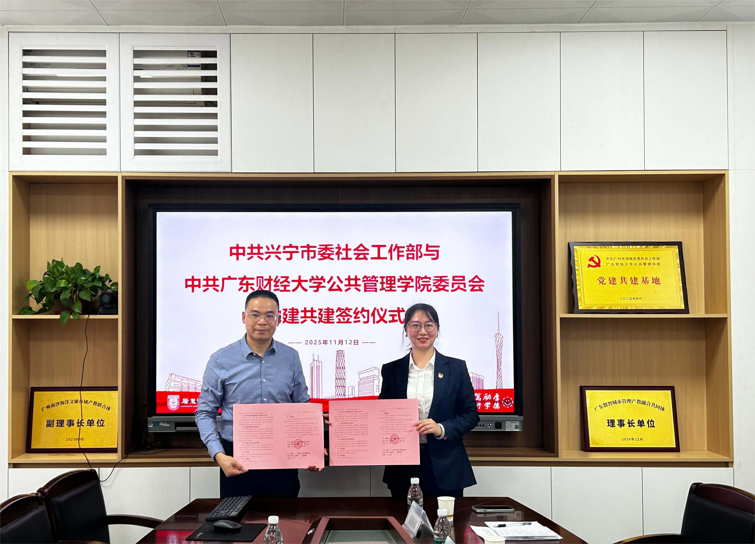 11月12日上午,我校公共管理学院党政领导与中共兴宁市委社会工作部部长一行开展座谈交流并签署党建共建协议。我校党委组织部副部长李爽参加座谈。