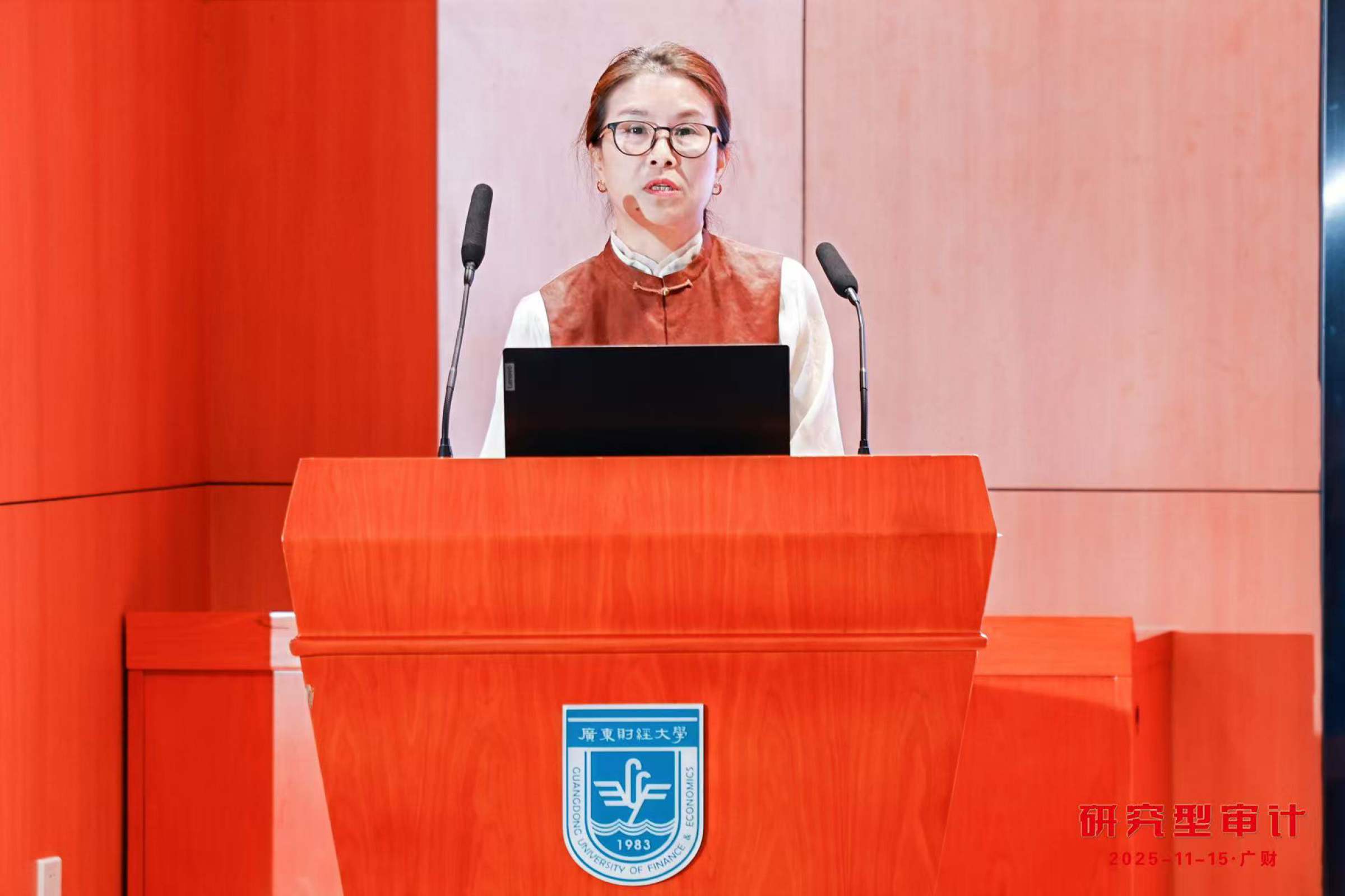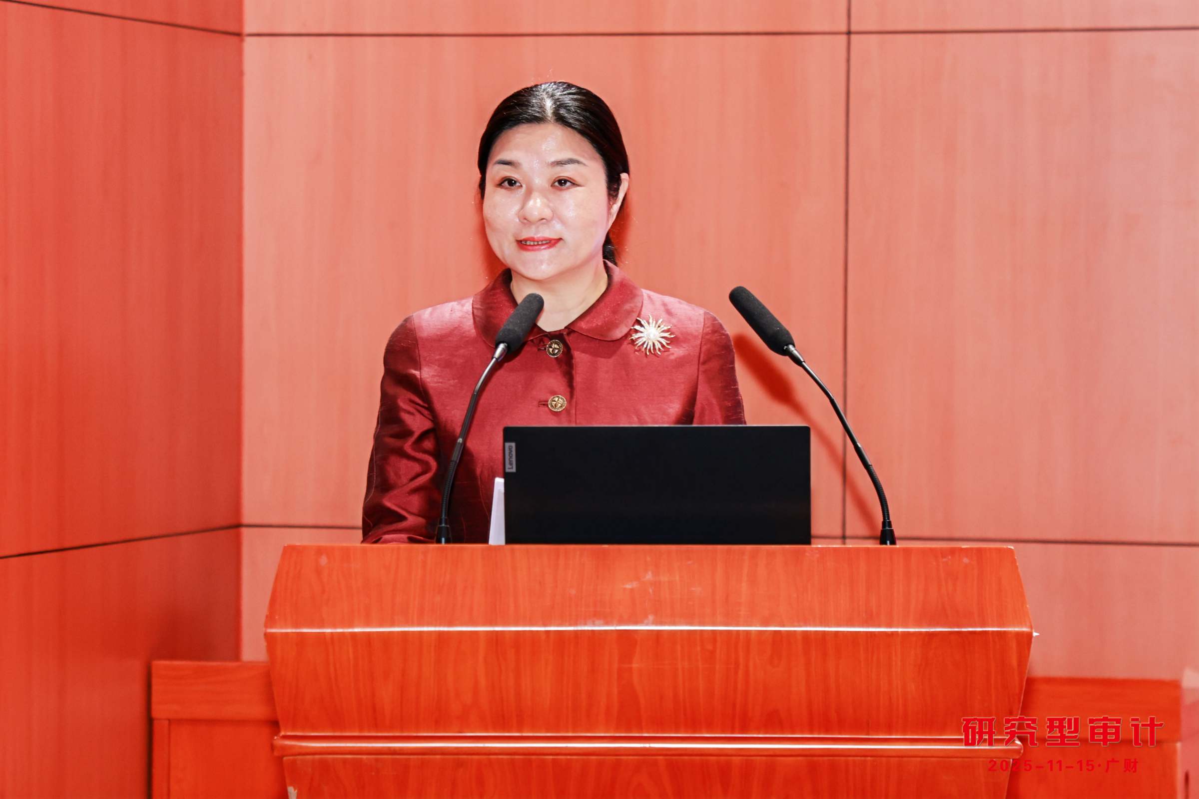 在主题报告环节,广东省审计学会秘书长黄志红作题为《研究型审计护航经济社会发展》的报告。她阐述了研究型审计如何通过深化宏观政策走向研究、精准把握被审计对象特征、优化审计项目实施流程,最终实现审计监督的全覆盖与精准化。她强调,新形势下的审计工作必须将研究思维贯穿事前、事中、事后全流程,将研究型审计作为提升监督效能的核心引擎,以更高质量的审计成果精准服务经济社会高质量发展大局。吴玉强主持该场报告。