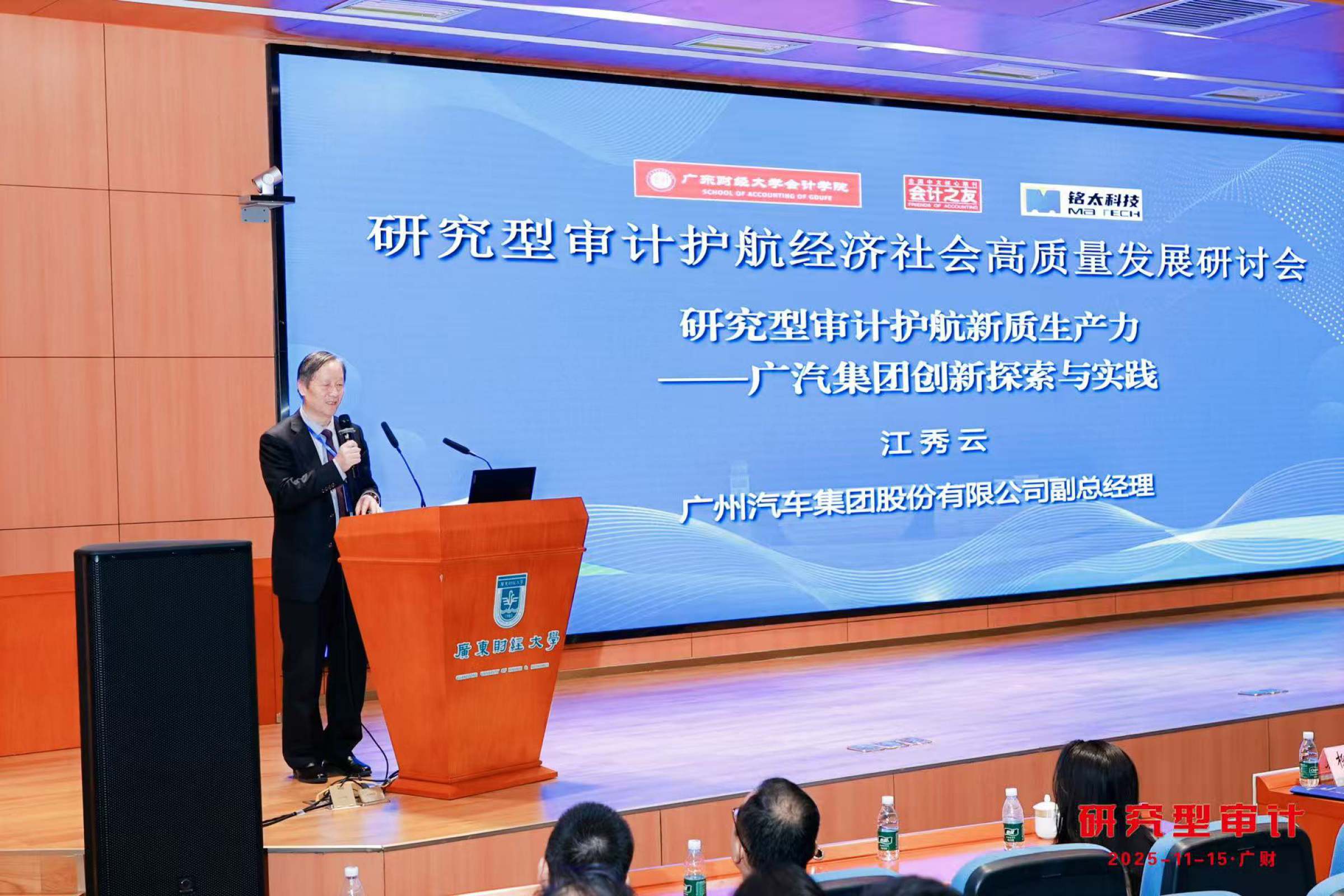 广州汽车集团股份有限公司副总经理江秀云以广汽的创新实践为例,阐述了《研究型审计护航新质生产力》的企业实践方案。她介绍了审计如何通过体系变革、数字化工具研发与风险管控模式创新,实现从传统价值保护角色向现代价值创造伙伴的战略转型。安徽财经大学盛明泉教授主持该场报告。