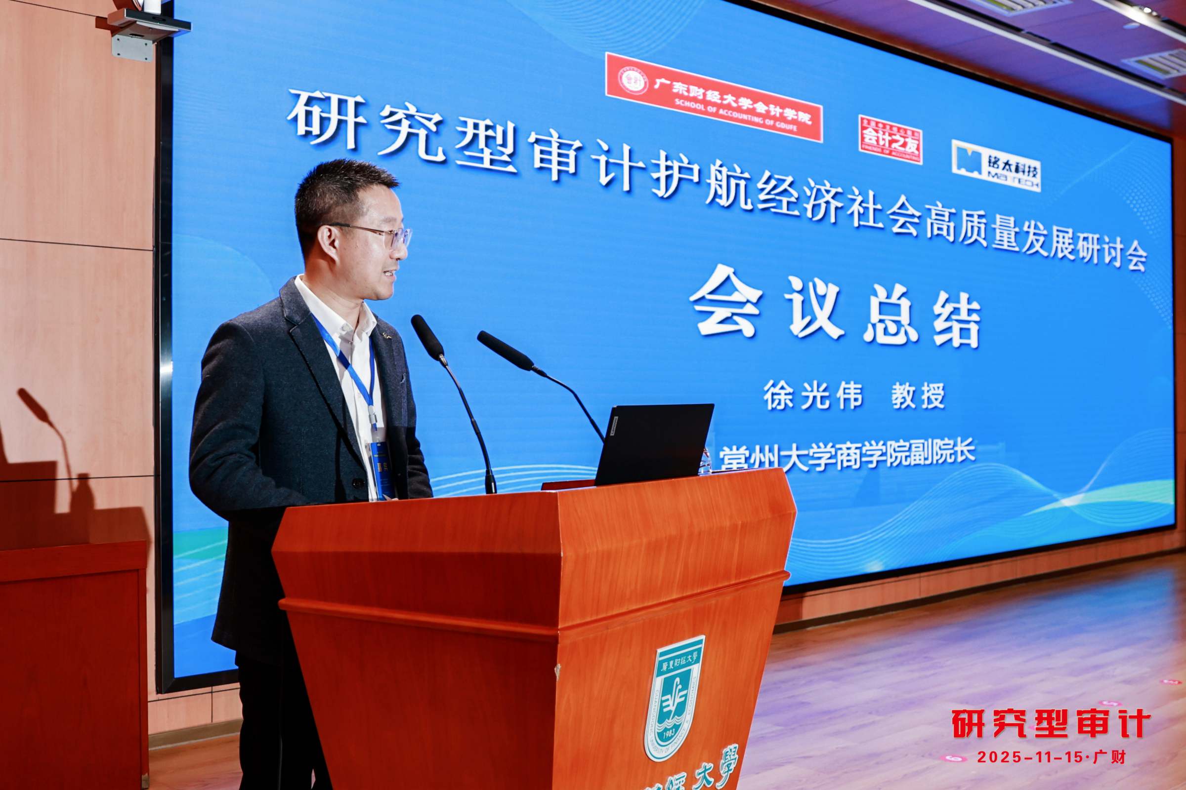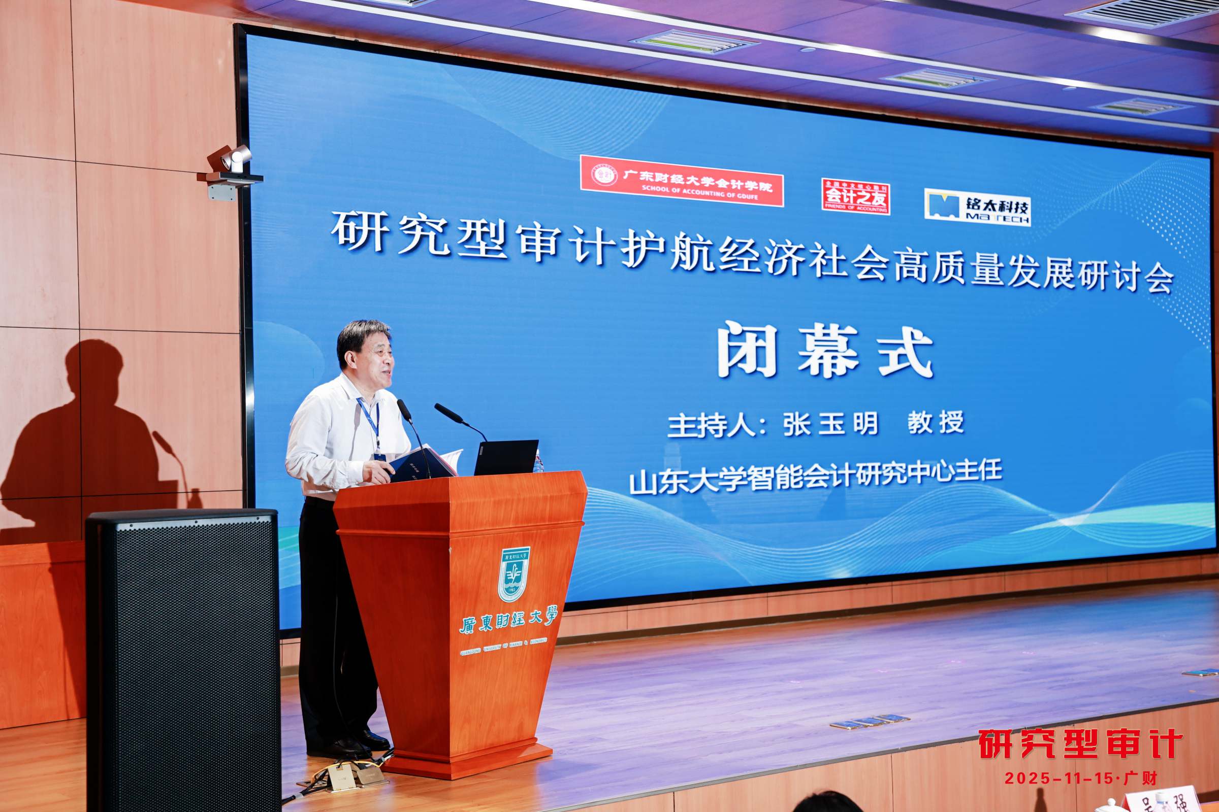闭幕式上,常州大学商学院副院长徐光伟教授指出,本次研讨会的内容从政策到理论、从方法到实践,成果丰硕。他倡导构建“政-行-企-校”协同发展生态,共同推动研究型审计在理论与实践层面实现新突破。山东大学智能会计研究中心主任张玉明教授主持闭幕式。