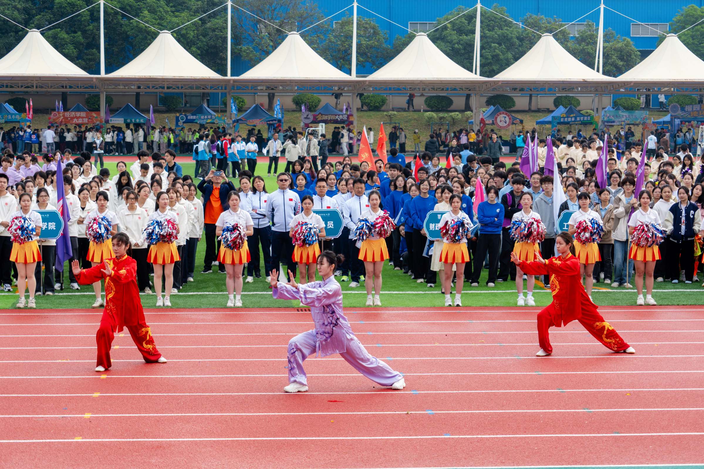 文艺展演环节精彩纷呈:校体育舞蹈队的《跃动星河·舞映芳华》展现力与美的交融,校武术队的《武动乾坤》彰显中华武魂,校排舞队的《青春节拍·舞跃十五运》呼应全运热潮,非遗项目南庄洪拳带来的《龙腾狮跃庆盛世》将传统民俗与体育精神完美融合,赢得现场阵阵喝彩。