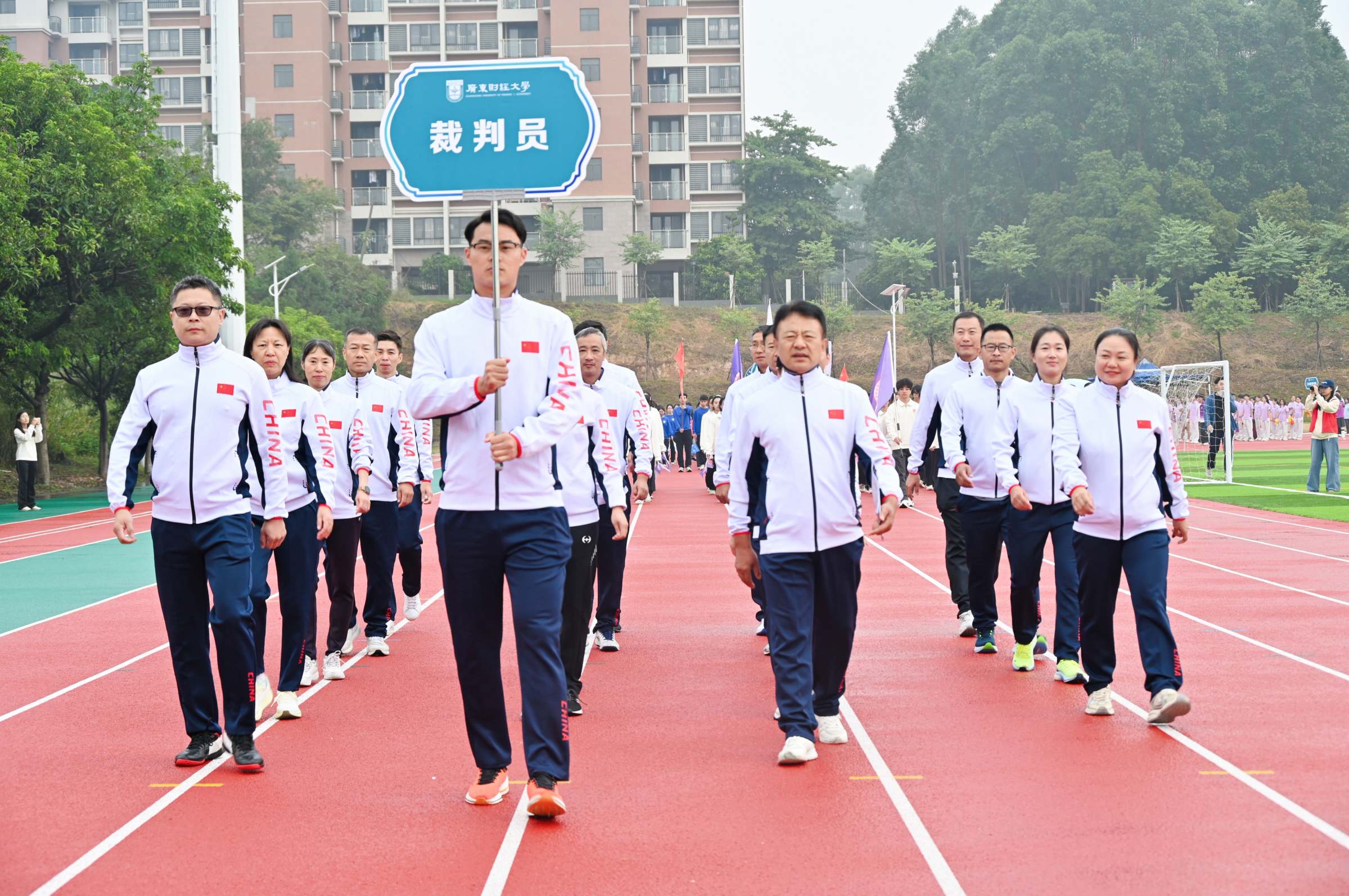 11月14日至15日上午,我校2025年田径运动会在佛山校区田径场举行。校党委书记郑贤操、校长于海峰、校党委副书记刘祖华、副校长陈国栋、纪委书记王志云以及广州三新控股集团有限公司副总裁伍立斌等嘉宾出席活动。开幕式由陈国栋主持。全校师生以昂扬姿态共赴这场融合体育精神与青春活力的体育盛会。